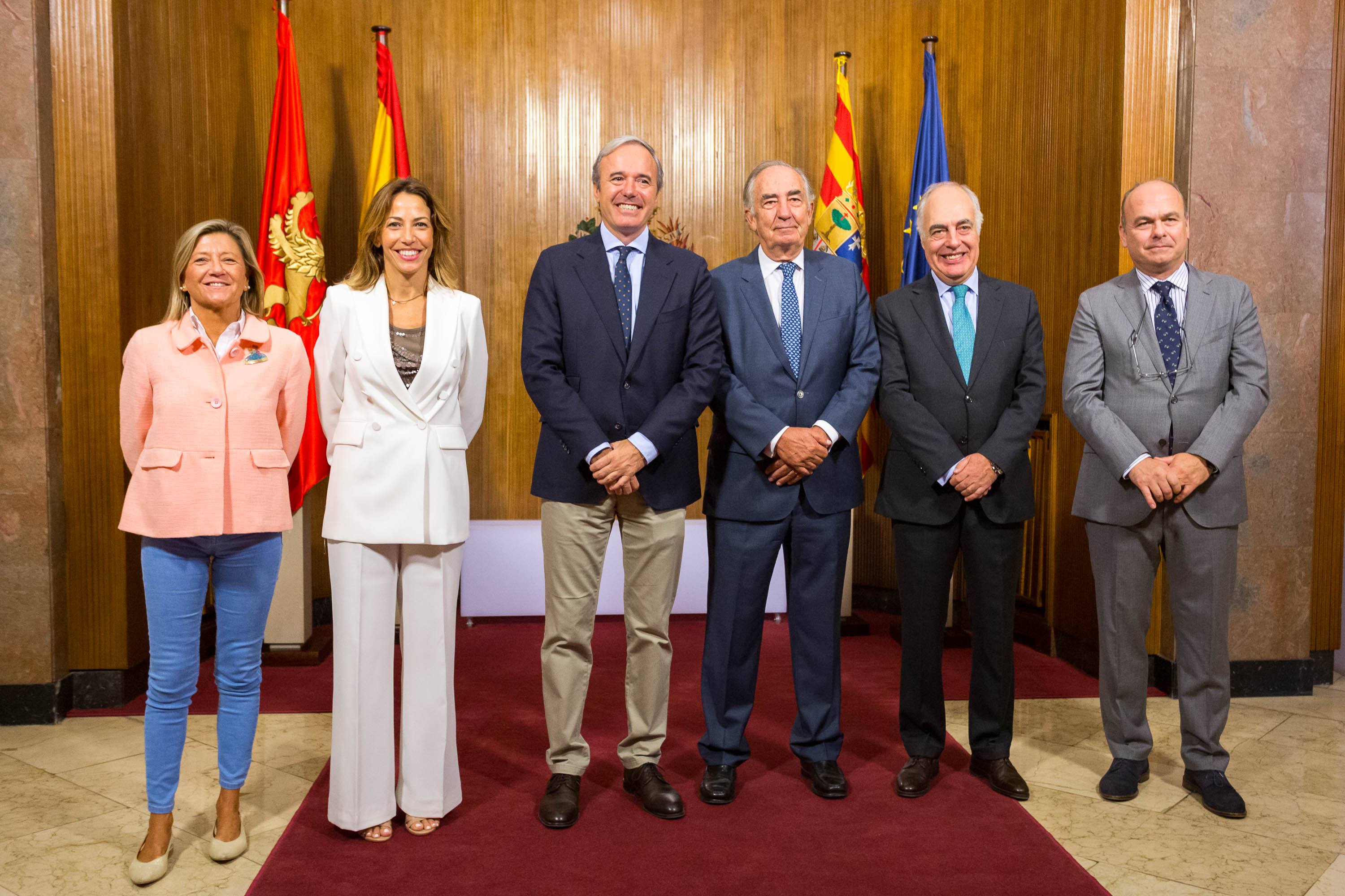 En el acto de hoy el alcalde Jorge Azcón y el presidente de Fundación Ibercaja han estado acompañados de la consejera de Servicios Públicos y Movilidad, Natalia Chueca, del director general de Fundación Ibercaja, José Luis Rodrigo Escrig y el coordinador de Mobility City, Jaime Armengol.