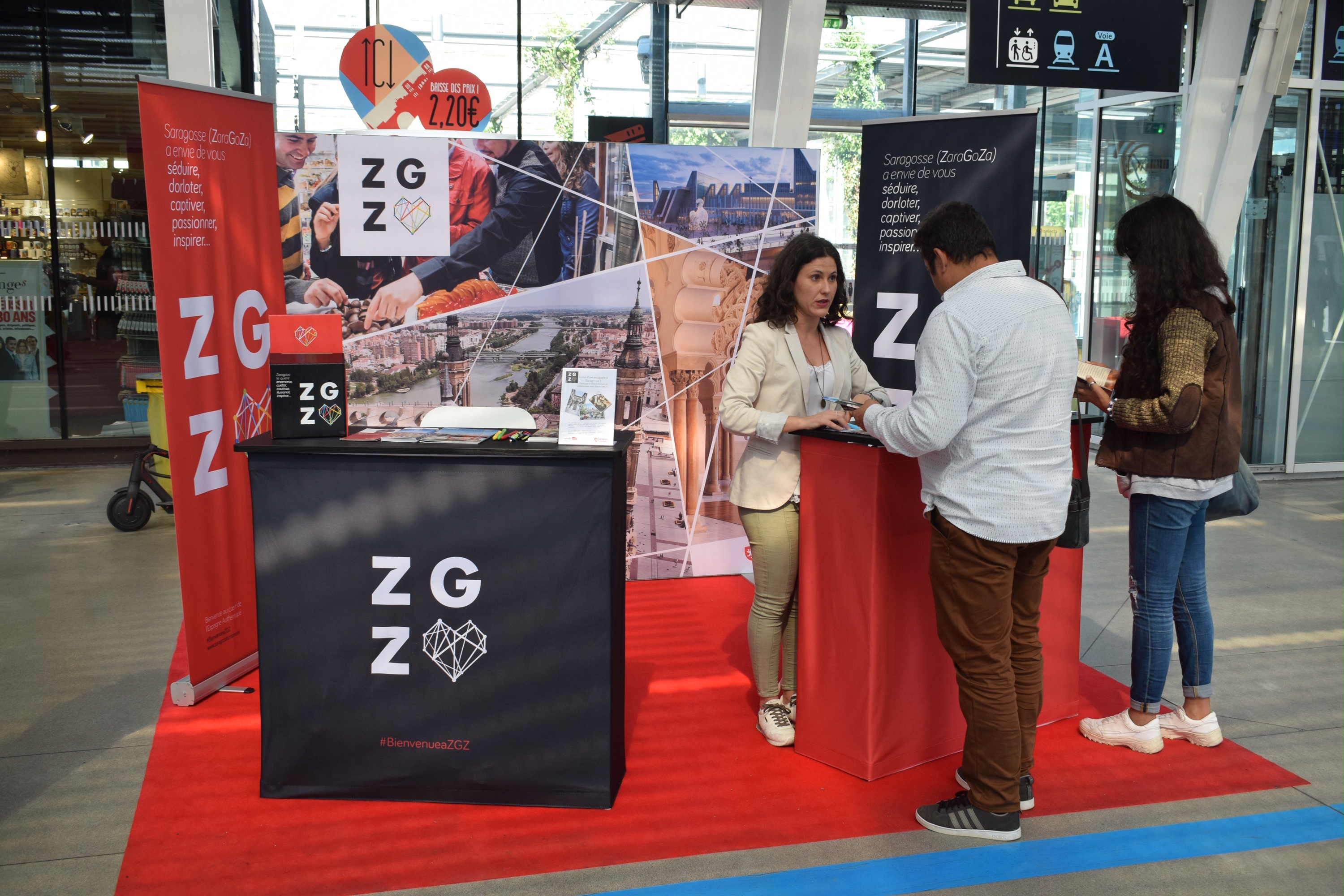 Esta acción dirigida a profesionales del sector se complementa con una segunda dirigida enfocada al público final con el objetivo de alcanzar la máxima difusión de los atractivos de Zaragoza, potenciar el reconocimiento de la ciudad y de la nueva Marca Zaragoza y conectar con usuarios habituales de las líneas de alta velocidad, transeúntes y visitantes de la estación, un público con un perfil abierto a descubrir un destino atractivo y bien comunidad con salida desde allí mismo.