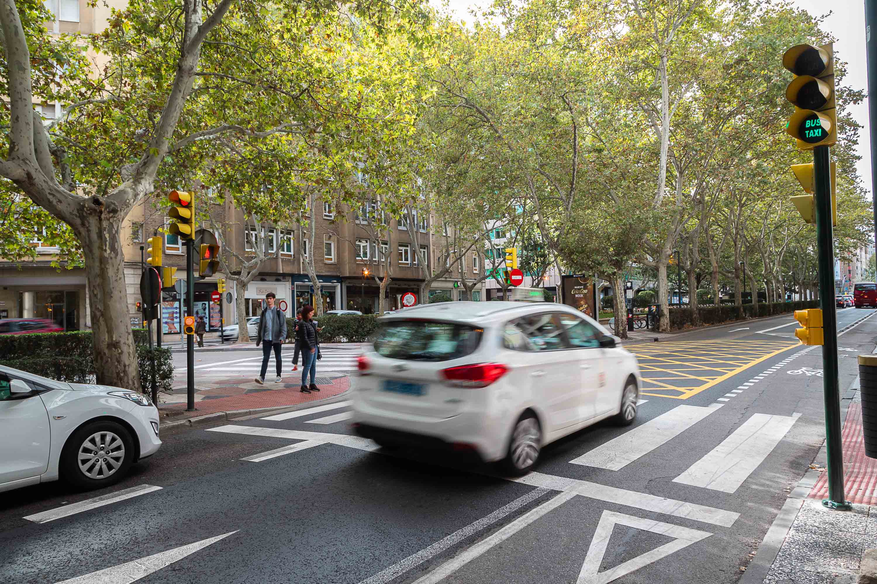 Además, y como complemento a estas medidas, se ha instalado en el Paseo de la Constitución un semáforo específico que permite que los usuarios del carril bus (taxis y autobuses) arranquen unos segundos antes que el resto de vehículos, para que puedan posicionarse por delante en el siguiente cruce, próximo ya a la Plaza Paraíso. Esto facilita posibles maniobras  en ese tramo final de Constitución y reduce los tiempos de paso del transporte público en la intersección. Además,  mejora la seguridad en la rotonda de Paraíso, ya que evita situaciones de peligro entre buses, algunos articulados, con coches y motos, que son más vulnerables.