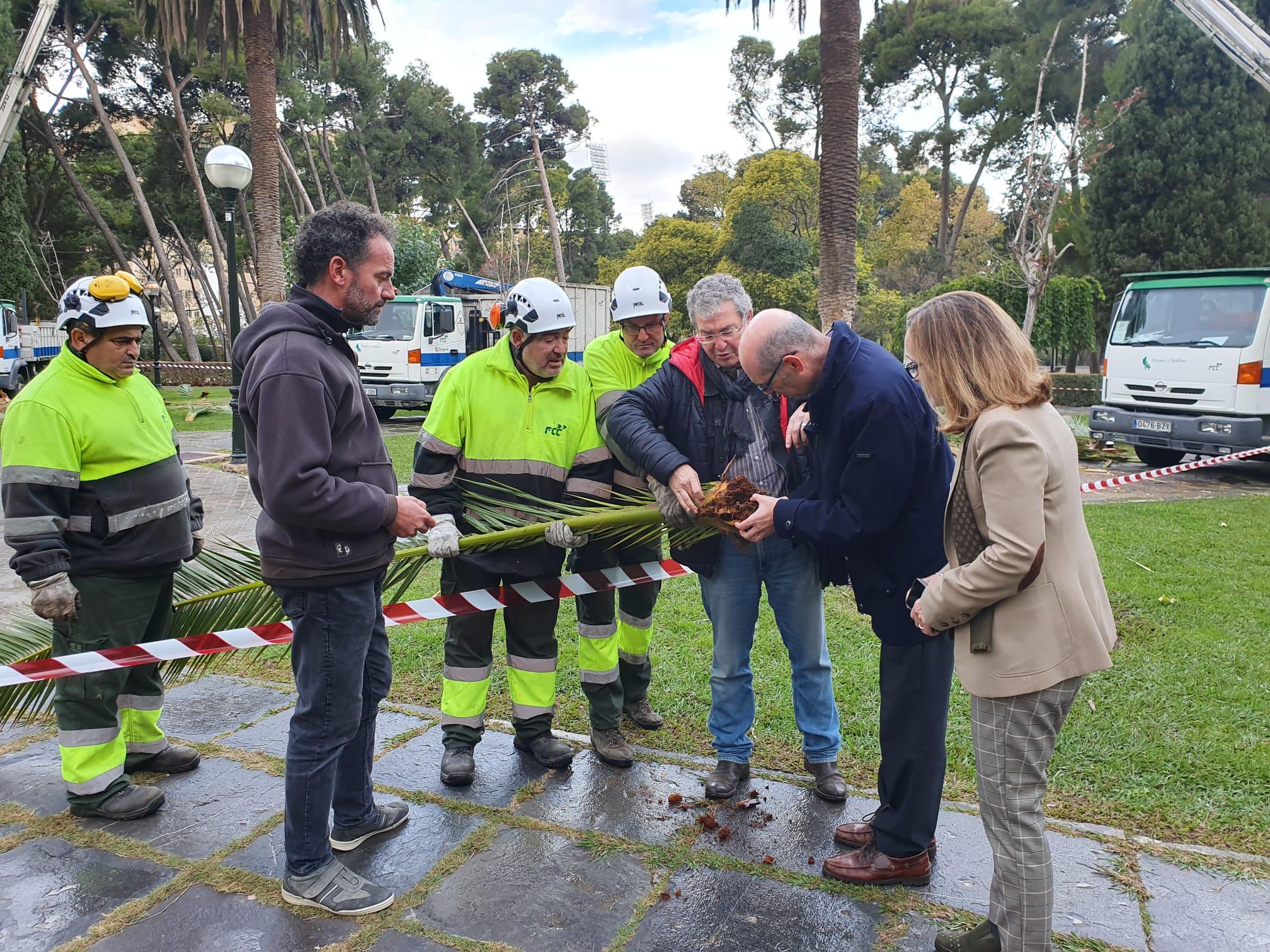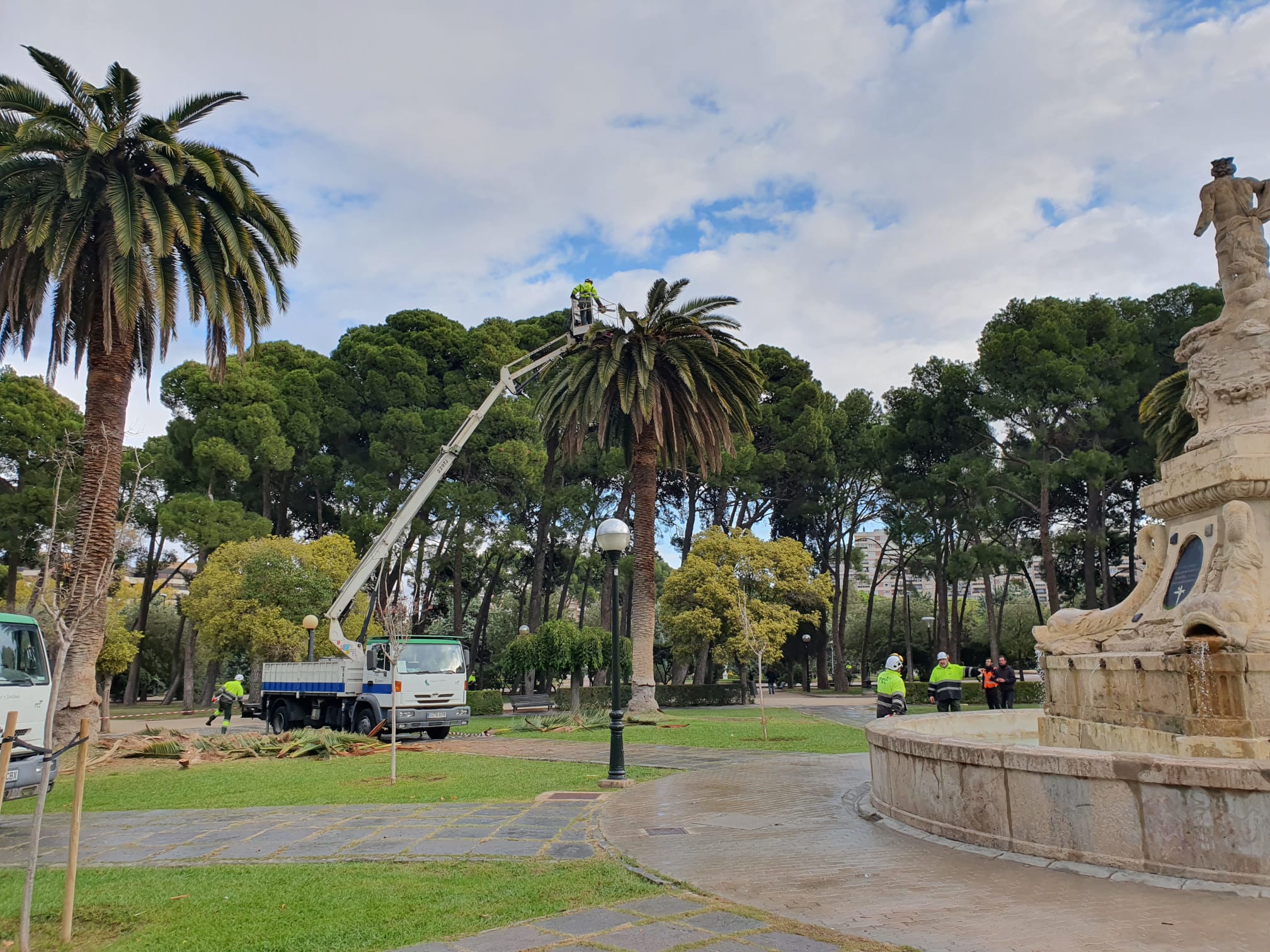 Tratamiento urgente en las palmeras de dos zonas del Parque Grande para luchar contra la plaga de picudo rojo