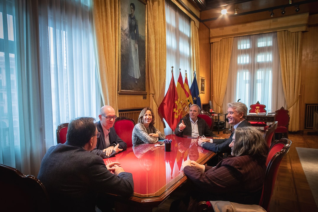 Este martes, el alcalde de Zaragoza, Jorge Azcón, junto a la consejera de Servicios Públicos y Movilidad, Natalia Chueca, ha recibido a una representación de la Junta Directiva de la AEPJP, integrada por su presidente, Francisco Bergua -jefe de Parques y Jardines de Zaragoza-; José Arrieta, vicepresidente de la Asociación y jefe Parques y Jardines de Ciudad Real; y Esperanza Ayuga, vocal de la AEPJP, profesora titular en la Escuela de Ingeniería y Gestión Forestal y Ambiental en la Escuela de Montes de la Universidad Politécnica de Madrid.