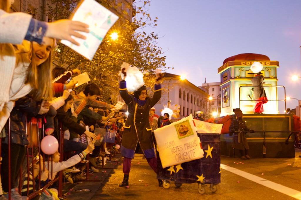 Todos ellos han dado paso a la comitiva real, encabezada por la gran estrella de Belén seguida del astrónomo, guía de las grandes comitivas que acompañan a Sus Majestades, seguida de títeres y estandartes reales que abrían el camino a bailarines y oferentes junto a los tronos de Melchor, Gaspar y Baltasar. Un gran rebaño de ocas construidas para la ocasión y manipuladas por titiriteros de la ciudad han abierto la parte más real de toda la cabalgata.