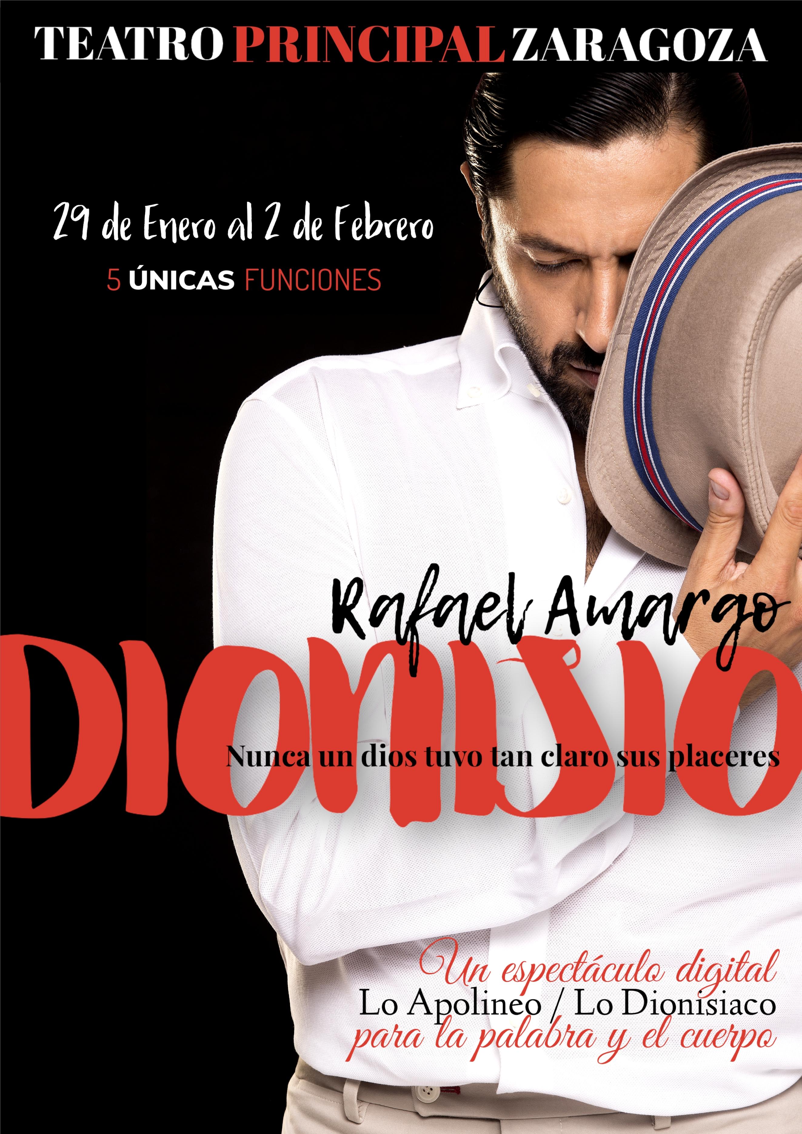 El espectáculo "Dionisio" con la compañía de Rafael Amargo puede verse en el Teatro Principal hasta el próximo domingo, 2 de febrero. Se trata de un espectáculo que aúna flamenco, ballet clásico y contemporáneo con texto, música y cante, recreando un espectáculo moderno, surreal y futurístico en el que se mezclan imágenes en tres dimensiones con imágenes corpóreas de gran tamaño, que enmarcan y complementan la escena, haciendo de Dionisio un deleite para los sentidos.