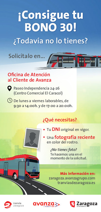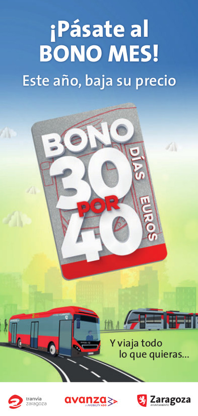 El Ayuntamiento de Zaragoza, en colaboración con Avanza Zaragoza y Los Tranvías de Zaragoza, ha puesto en marcha la  campaña "30X40", una acción de comunicación en mupis, marquesinas y flyers para fomento del uso del transporte público y, en concreto, para la utilización del Bono Mes, que ha bajado su precio con las nuevas tarifas en vigor desde principios de febrero.