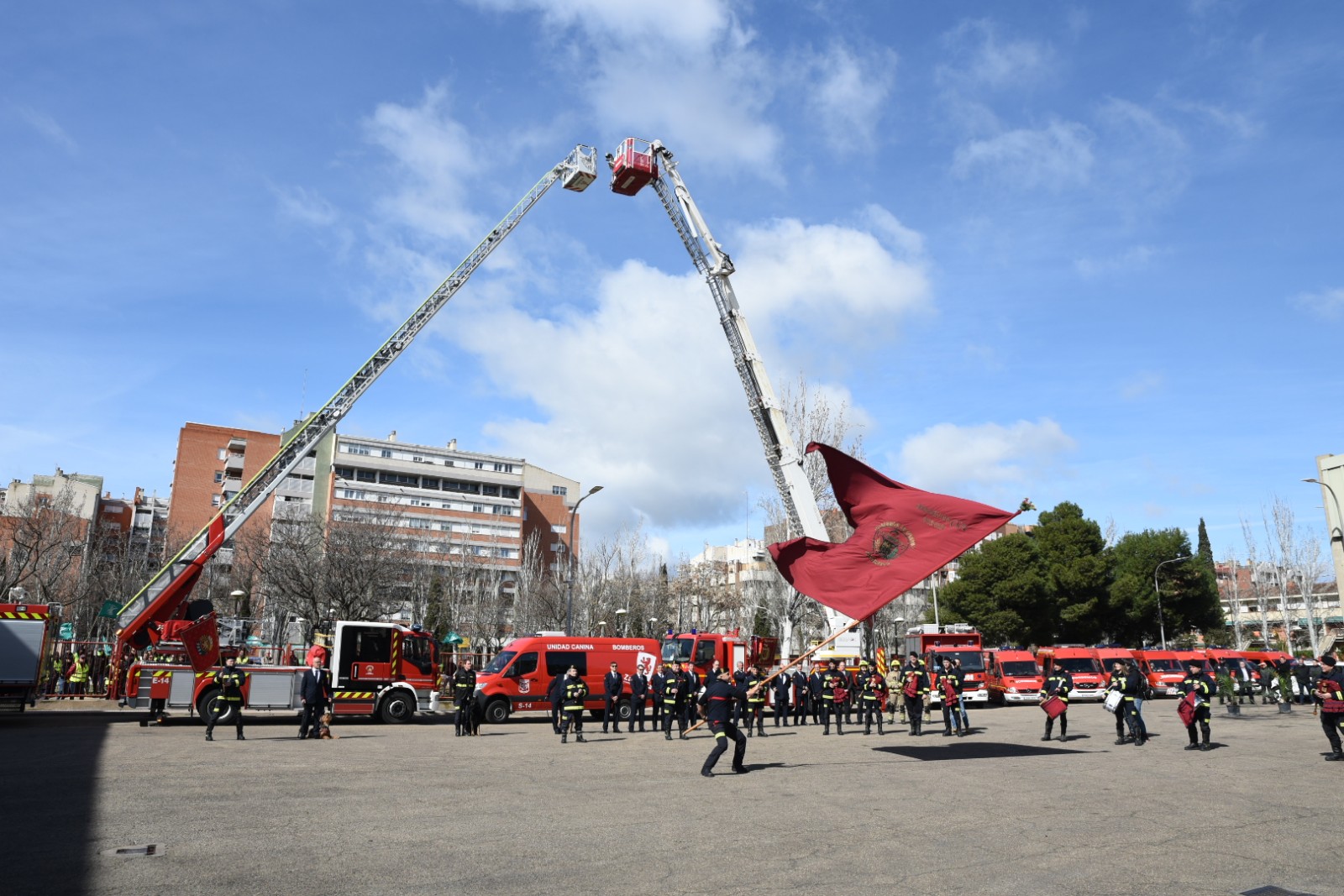 Los actos oficiales han sido presididos por el concejal delegado de Bomberos, Alfonso Mendoza, en representación del Alcalde de Zaragoza. A la ceremonia han asistido también representantes de los diferentes grupos municipales presentes en el Consistorio, así como de distintos cuerpos y fuerzas de seguridad, entidades sociales y representantes de otras instituciones, como la delegada del gobierno, Pilar Alegría, además de familiares de los Bomberos y público en general.
