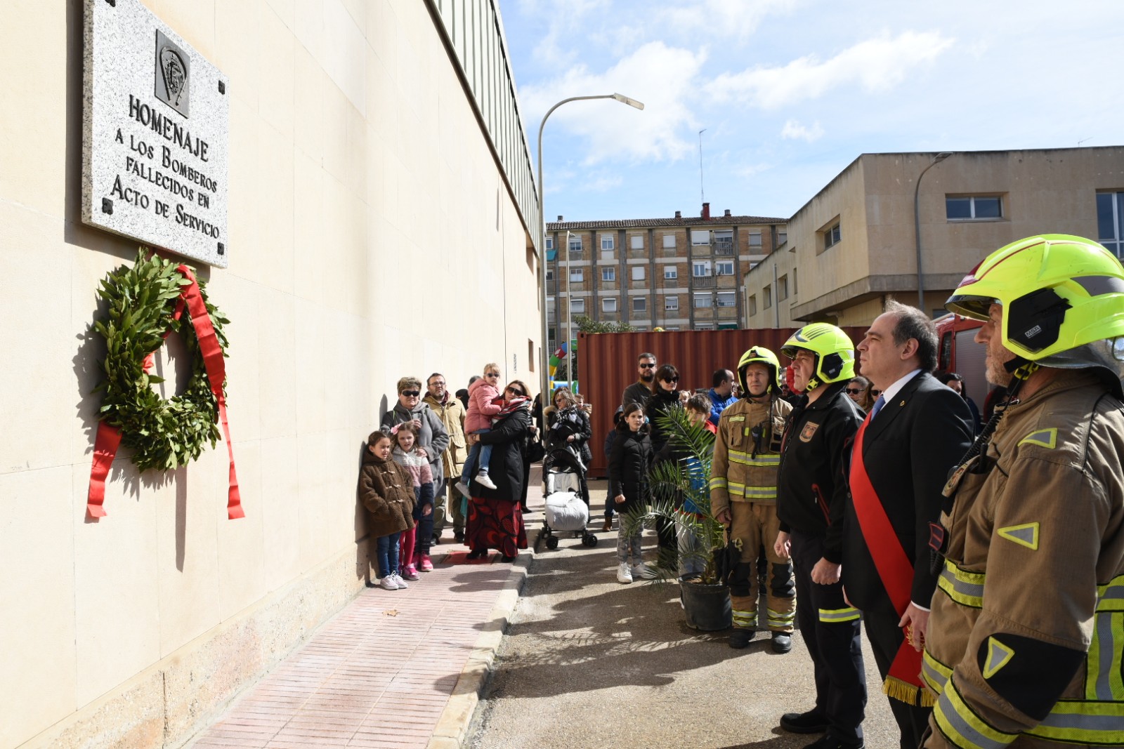 Tras la Revista del Cuerpo de Bomberos, formado con su estandarte, ha tenido lugar la Ofrenda de Corona de Laurel ante la placa que recuerda a los bomberos fallecidos en acto de servicio. Estos actos han estado acompañados por la Colla de Gaitas del Cuerpo de Bomberos del Ayuntamiento.