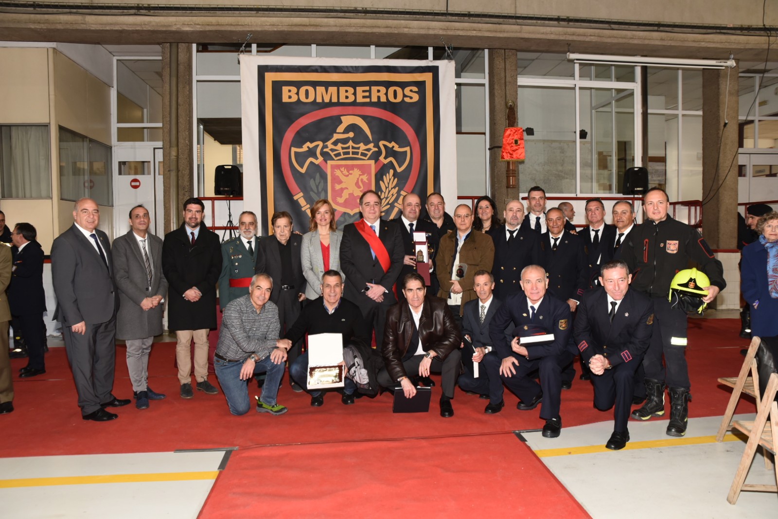 Este año, como novedad, se han entregado tres distinciones especiales a personas o instituciones que no forman parte, directamente del Cuerpo de Bomberos. Así, se ha homenajeado al sacerdote Luis Antonio Gracia, que durante 42 años fue el párroco de los Bomberos y ha sido una figura estrechamente ligada a este colectivo. También se ha entregado una placa conmemorativa a los bomberos de Mauleon, localidad francesa con la que se han realizado encuentros y formaciones conjuntas.