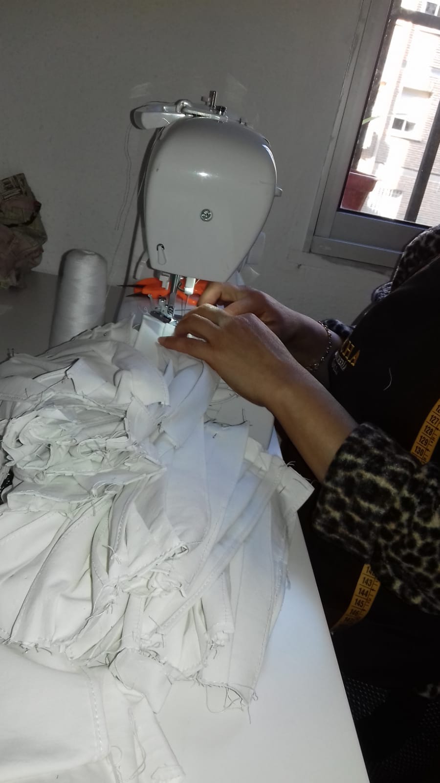 Para la confección de dichas mascarillas se ha contado con profesionales y voluntarias de la costura relacionadas con proyectos del servicio de Mercados, Zaragoza Activa y con mujeres que están integradas dentro del proyecto de iniciativa social 'Hilvanando Culturas' de Ayuda en Acción. En unos casos, el Ayuntamiento les ha provisto de tela, donada por la Lavandería Salduba, hilos y otros materiales necesarios para la confección y empaquetado de las mascarillas. En otros casos, han sido las propias costureras las que han puesto de su bolsillo las materias primas. Del reparto de materiales entre las voluntarias y la posterior entrega en los diferentes establecimientos de las mascarillas se han encargado los miembros de la Asociación Provincial de Auto-Taxi de Zaragoza, que han querido colaborar gratuitamente con el proyecto.