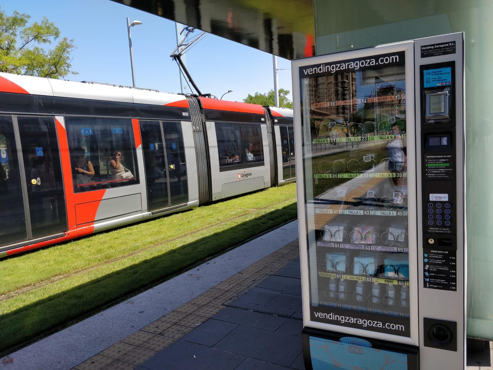Instaladas nuevas máquinas expendedoras de mascarillas y gel hidroalcohólico en las paradas del tranvía de Romareda y Gran Vía
