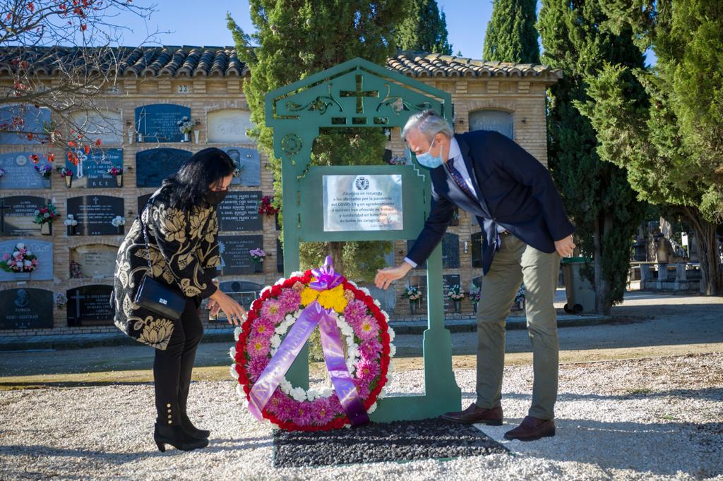 Durante la visita al recinto funerario, se han realizado diferentes ofrendas florales entre las que han destacado la dedicada a Sanz Briz como cierre de la celebración del 40 aniversario de su muerte, y la que se ha realizado en el monolito dedicado a la memoria de las víctimas del Covid-19 y a los trabajadores municipales de los servicios esenciales contra la pandemia, que se ha ubicado en la plaza del Voluntariado. En este pequeño monumento, tal y como anunció el alcalde en el homenaje de la plaza del Pilar del pasado 7 de julio, se ha instalado la placa conmemorativa que presidió aquel acto y la cápsula del tiempo que fue llenada ese día por los trabajadores de diversos servicios municipales con diversos objetos de recuerdo.