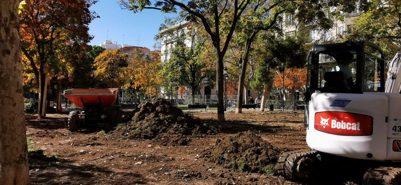 Posteriormente, se procederá a la incorporación de tierra seleccionada, a la escarificación y la descompactación del terreno y a la aportación de tierra vegetal, además de la reparación ya citada de los sistemas de riego. La nueva tierra se incorporará nivelando de nuevo el terreno, donde destacará la nueva modelización de los cuatro parterres centrales confirmando pequeños montículos alargados. Finalmente, se colocarán los tepes (rollos) de césped que cubrirán los renovados parterres, y se implementará el sistema de telegestión del riego.