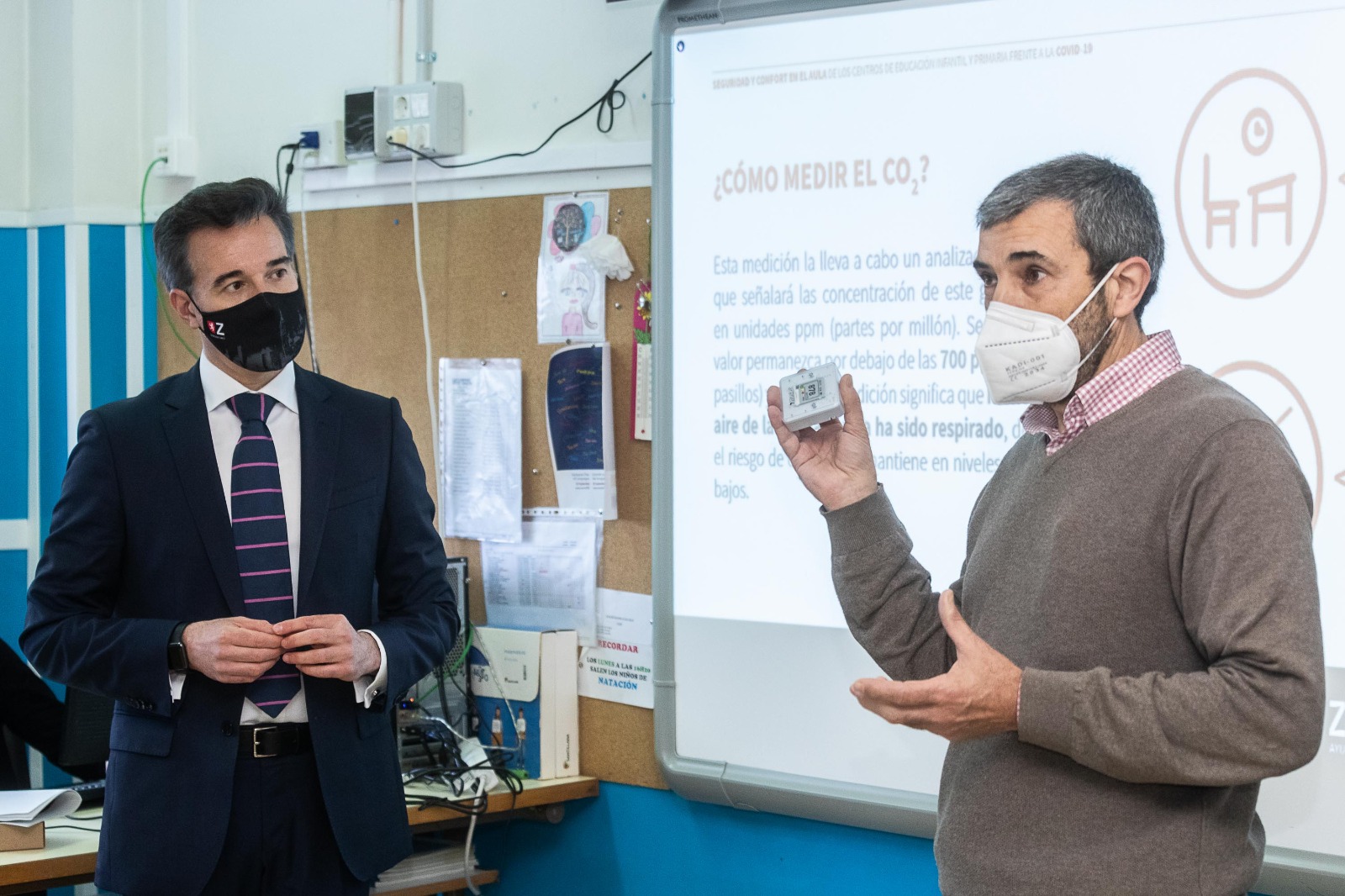 Se facilitará a los colegios recursos formativos sobre ventilación natural en aulas utilizando sensores de CO2 y, además, se podrá contar con el apoyo y asesoramiento técnico, sobre todo en la fase inicial de puesta en marcha del programa. Para ello se contará con la colaboración del Laboratorio de Investigación en Fluidodinámica y Tecnologías de la Combustión (LIFTEC, Centro Mixto de la Universidad de Zaragoza y el Consejo Superior de Investigaciones Científicas, CSIC), cuyo miembro investigador y catedrático de Mecánica de Fluidos de la Unizar, Javier Ballester, ha explicado esta mañana, en el CEIP Tenerías, el funcionamiento del protocolo junto al consejero de Urbanismo. Cada centro aportará su experiencia para realizar un seguimiento de la información recopilada y asistirles así en el registro y análisis de datos y en la redacción de los protocolos.