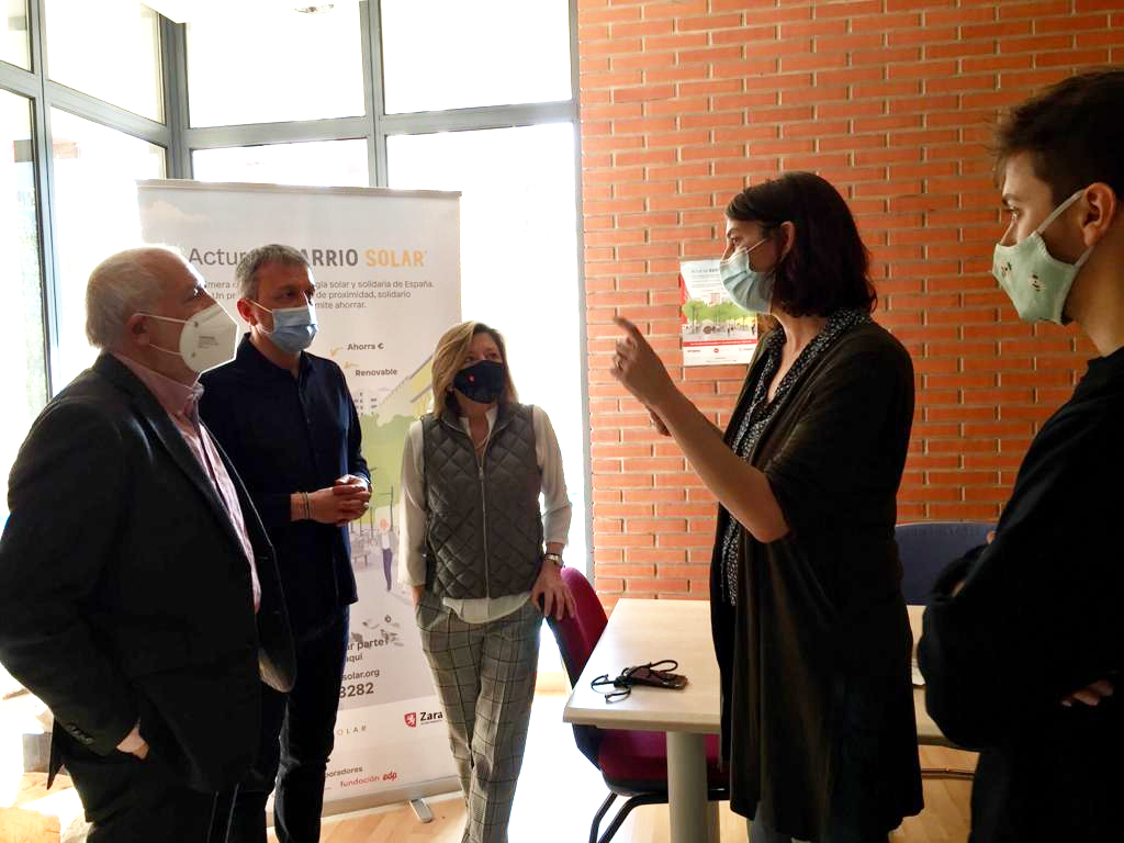 Para orientar y apoyar en todo el proceso a las personas interesadas, se ha habilitado la Oficina Actur Barrio Solar en la Junta de Distrito (María Zambrano, 56 - Centro Cívico Río Ebro); un punto informativo que han visitado hoy la consejera de Infraestructuras y Medio Ambiente, Patricia Cavero y el presidente de la Junta de Distrito Fernando Rivarés, acompañados por el presidente de Ecodes, José Angel Rupérez. La oficina está atentida por personal de Ecodes, que analiza con los interesados su consumo energético para estimar ahorros y valorar toda las implicaciones del proyecto. Desde que se puso en marcha el día 1 de marzo esta oficina ha recibido más de 250 peticiones de información. La atención se realiza tanto de forma presencial como por teléfono y en ambos casos es necesario solicitar cita previa a través de la web mibarriosolar.org o en el 976 298 282