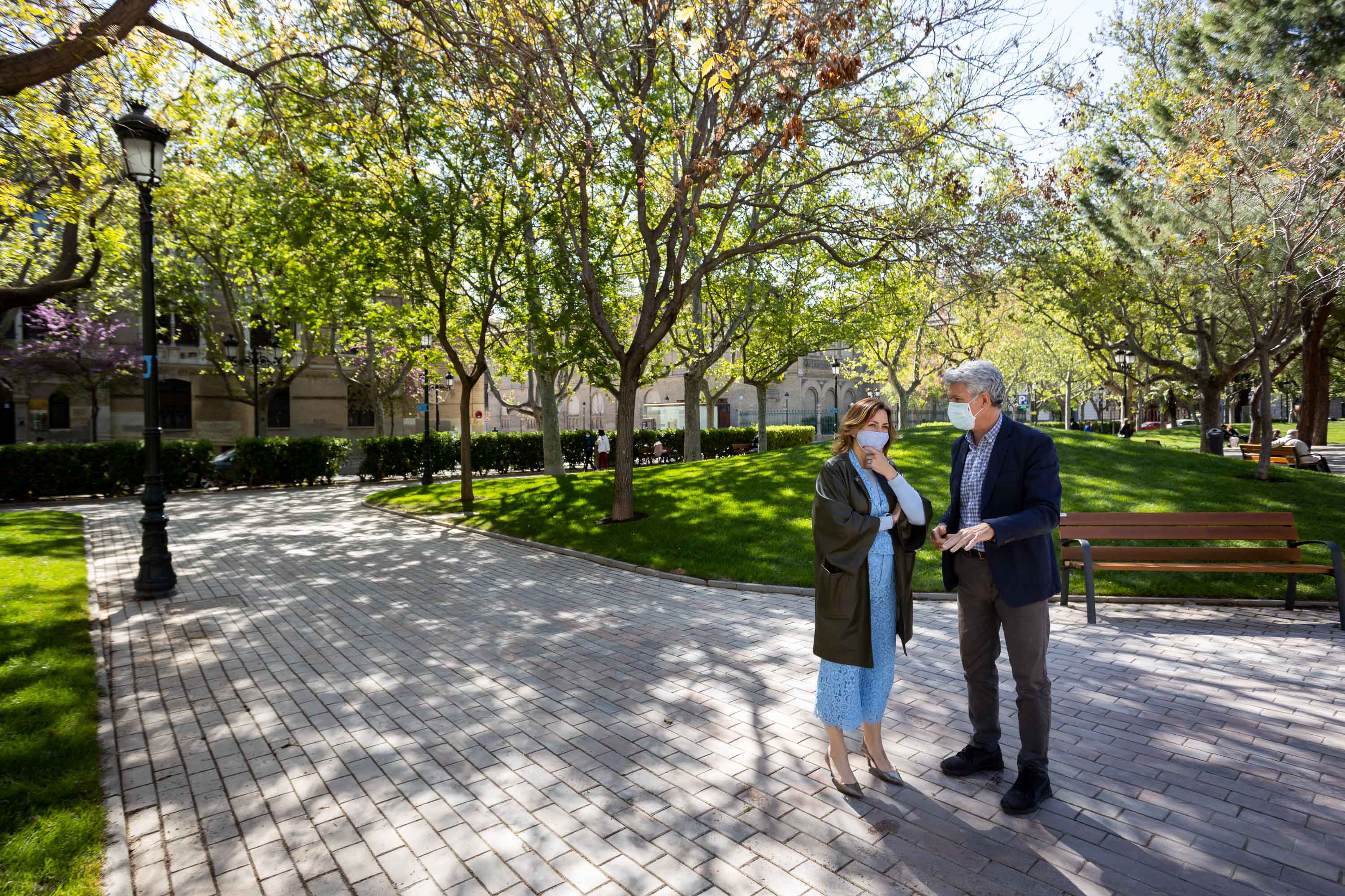 La plaza de Los Sitios estrena la primavera con todas sus zonas verdes renovadas y actualizadas