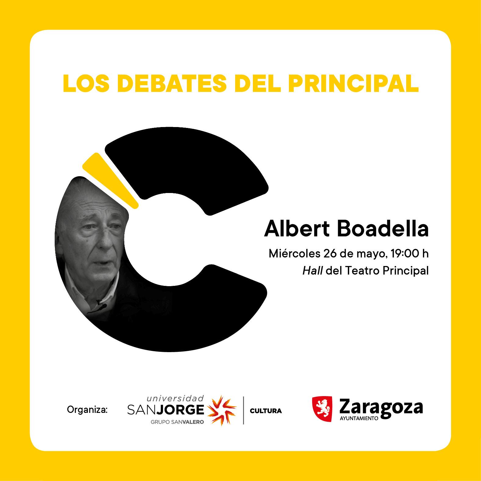 El Teatro Principal acoge mañana miércoles, 26 de mayo, un nuevo encuentro de "Los debates del Principal", que organiza el Patronato Municipal de las Artes Escénicas y de la Imagen (PMAEI) y la Universidad San Jorge. En esta ocasión el invitado será Albert Boadella, actor, dramaturgo y director hasta 2012 de la compañía Els Joglars.