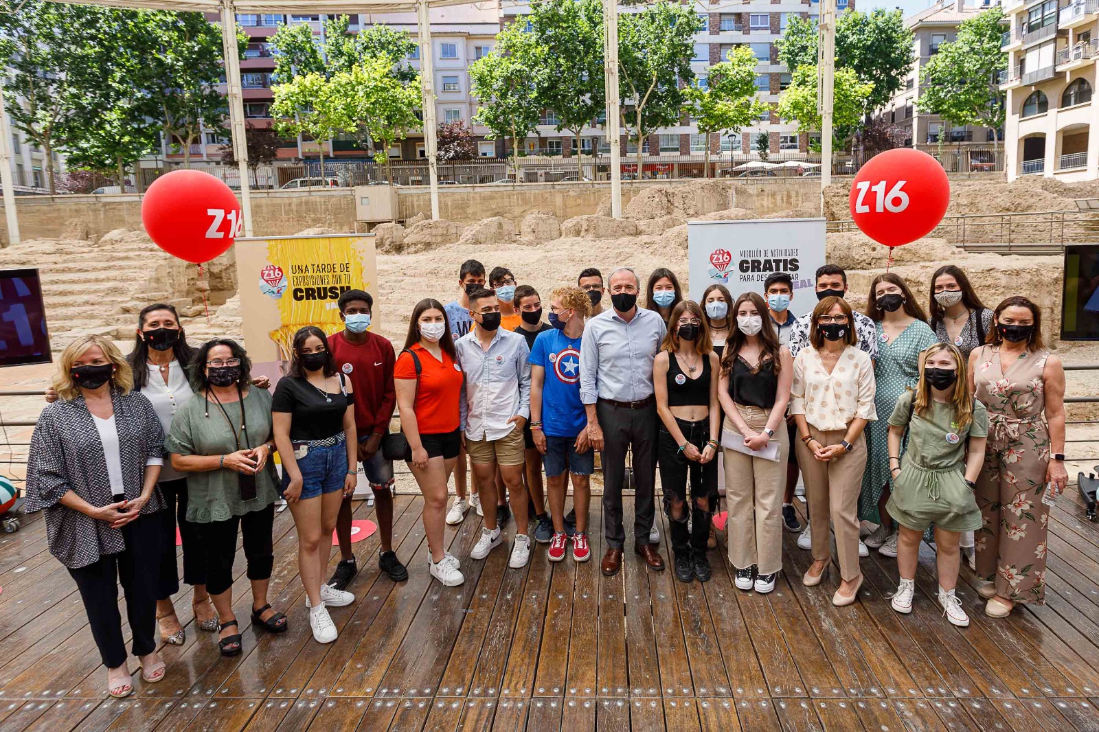 El alcalde de Zaragoza, Jorge Azcón, ha presentado este lunes el regreso de este programa de ocio, acompañado por la concejal de Juventud, María Antoñanzas, y dieciséis de los jóvenes embajadores, en un acto que ha tenido lugar en el Teatro romano de Zaragoza, uno de los monumentos incluidos en el Z16 y que los usuarios podrán conocer de manera gratuita. Además, se ha desplegado una campaña informativa en los mupis de la ciudad, así como en los vinilos de los autobuses y en las redes sociales para dar a conocer el programa.