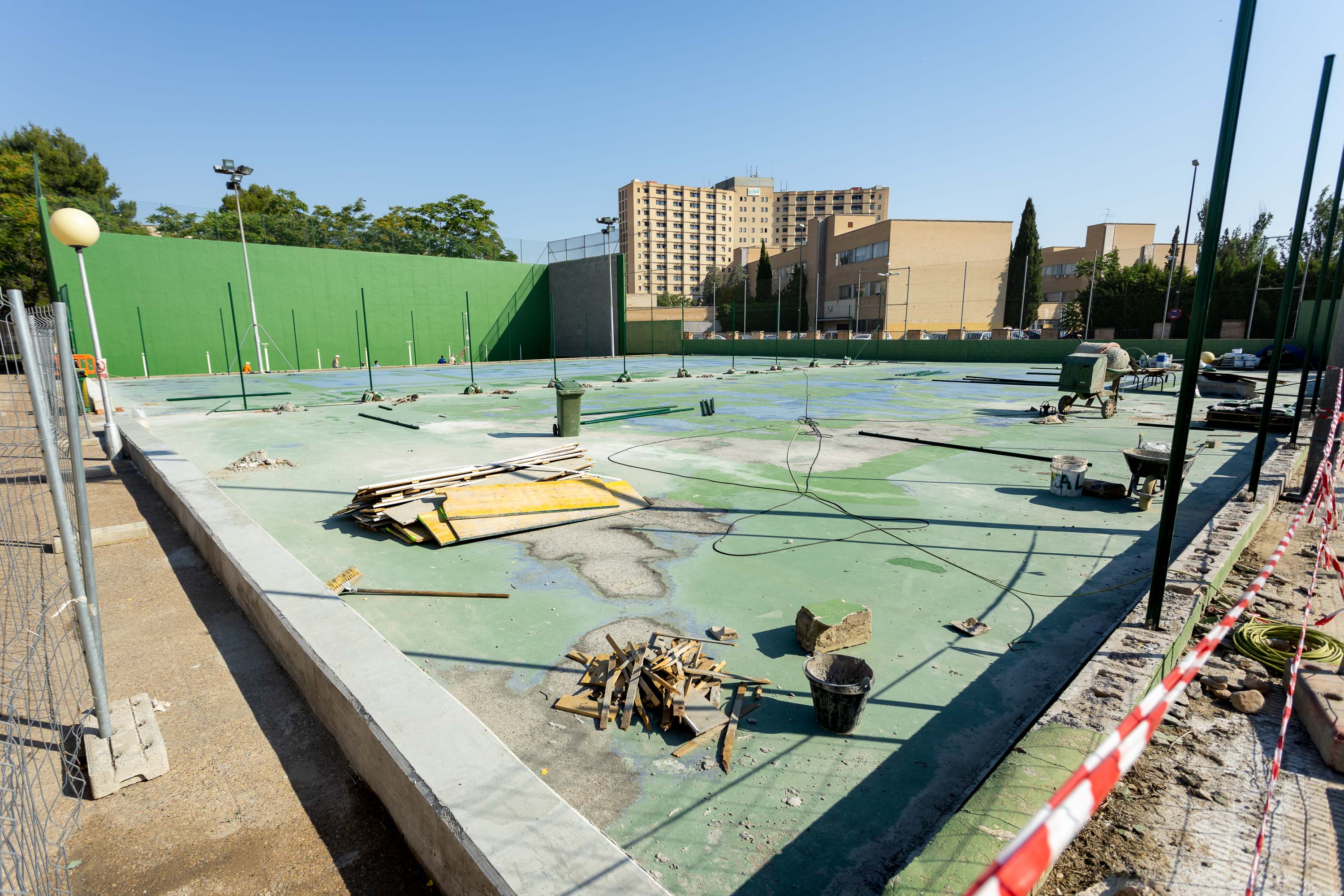 El Centro Deportivo Municipal Gran Vía va a estrenar este verano dos nuevas pistas de tenis de césped artificial, en las que el Ayuntamiento de Zaragoza ha invertido 38.720 euros (IVA incluido). La obra está siendo ejecutada por la empresa Grupo Espacios Verdes 2013 SL y actualmente se encuentra en su recta final.