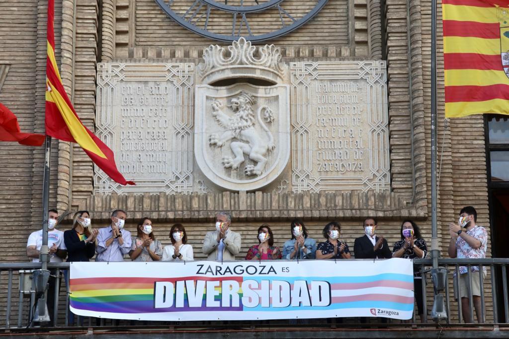 Azcón, quien ha agradecido la participación de los grupos municipales, ha indicado que con esta pancarta la corporación expresa la ¿libertad¿ y el ¿apoyo¿ a los colectivos LGTBI y trans, aunque este año se haga ¿de una forma distinta¿, después de que el Ayuntamiento de Zaragoza haya recurrido una sentencia judicial que todavía no es firme.