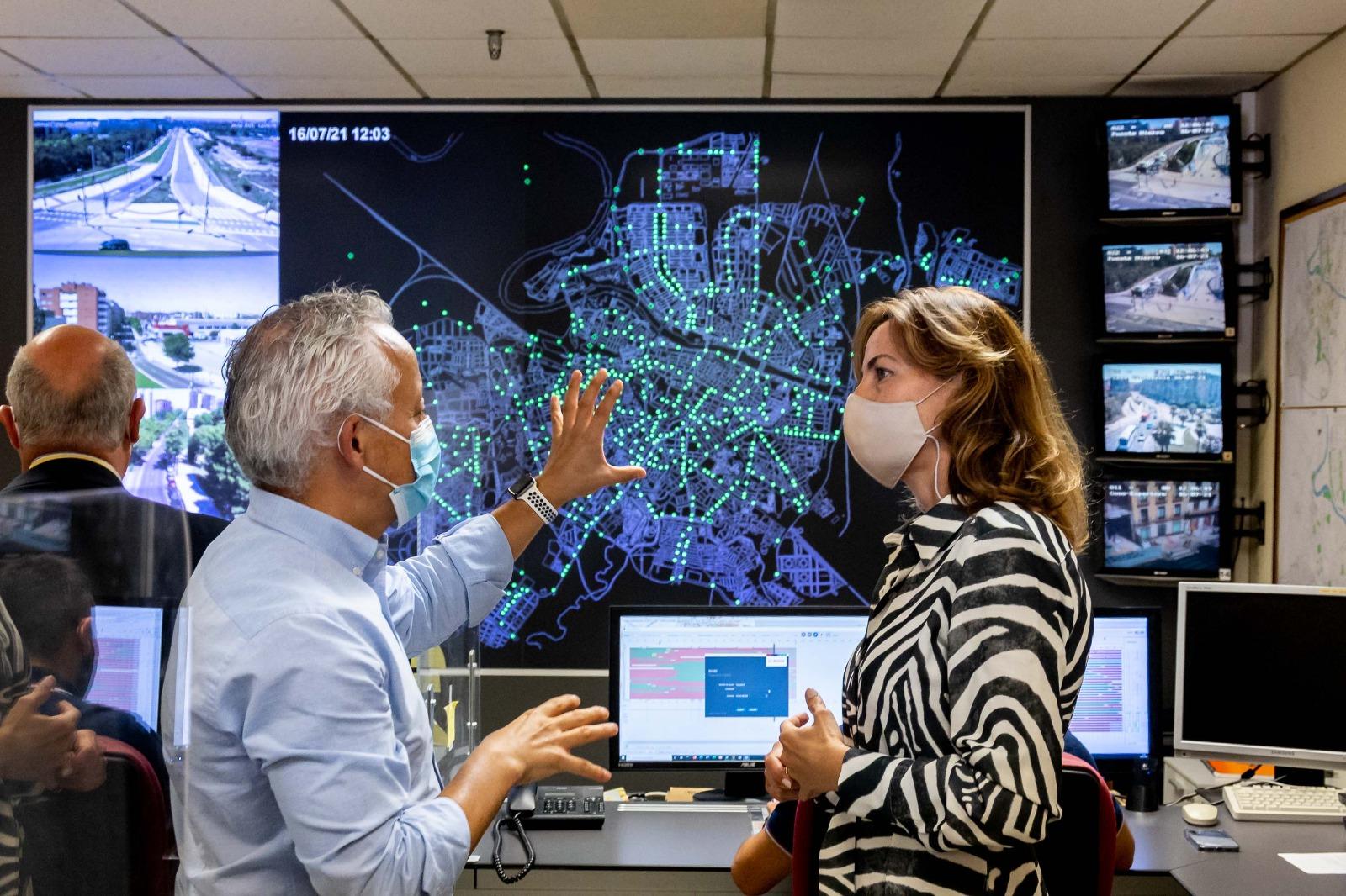 Así lo ha explicado la consejera de Servicios Públicos y Movilidad, Natalia Chueca durante una visita al Centro de Control, donde ha avanzado que además se van a ampliar y actualizar los planes de tráfico que se activan en función de la situación de la circulación. A partir de la información recibida en tiempo real, estos planes permiten dar respuesta a situaciones de congestión, obras o incidencias que se pueden registrar como accidentes, aglomeraciones de peatones o problemas en vías ciclistas gestionando, entre otras cuestiones, la programación de los semáforos. 'Vamos a tener más inteligencia en la gestión del tráfico de forma que sea más fluido moverse por la ciudad y que los tiempos semafóricos se puedan ajustar mejor', ha destacado Chueca.