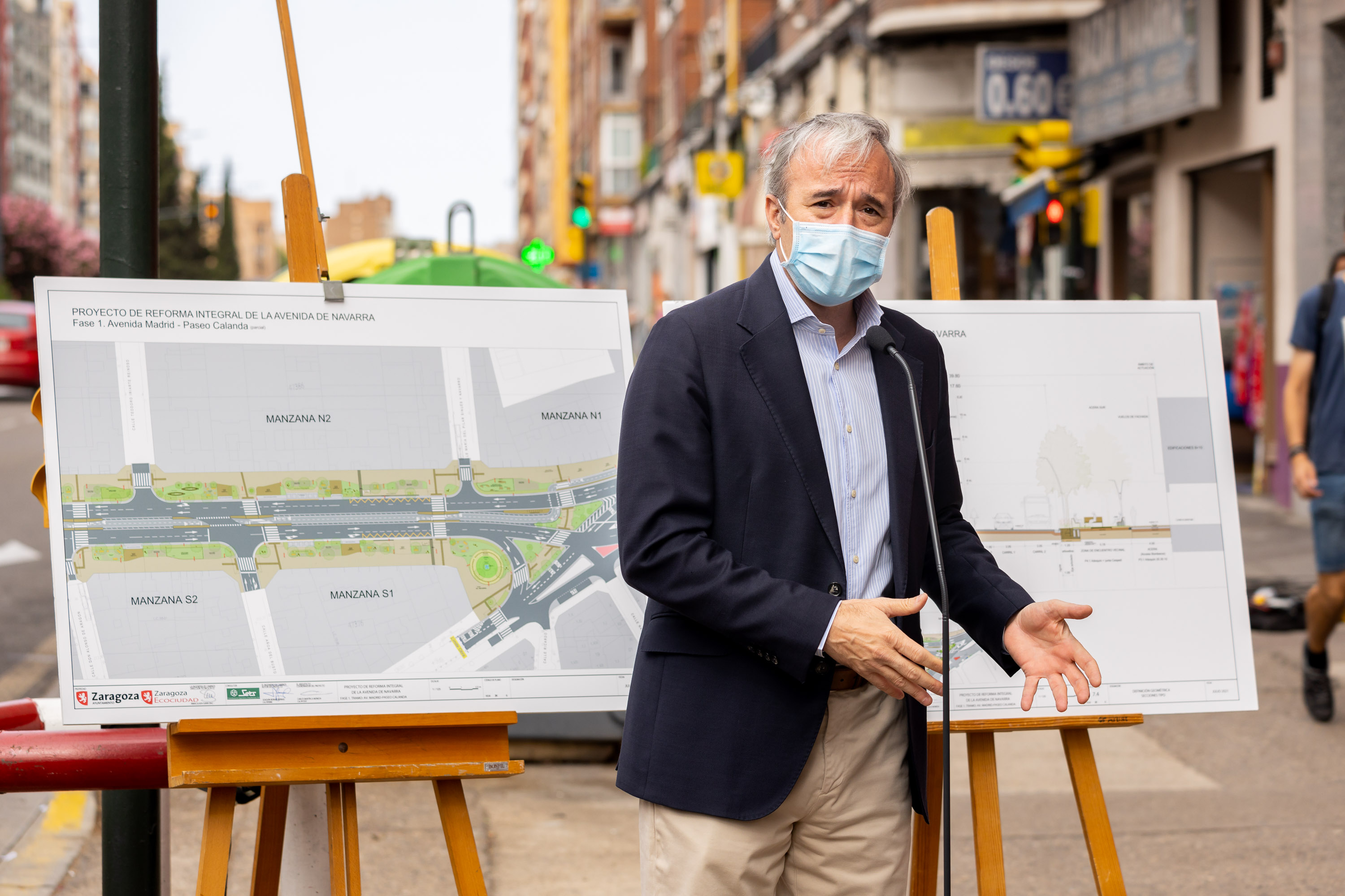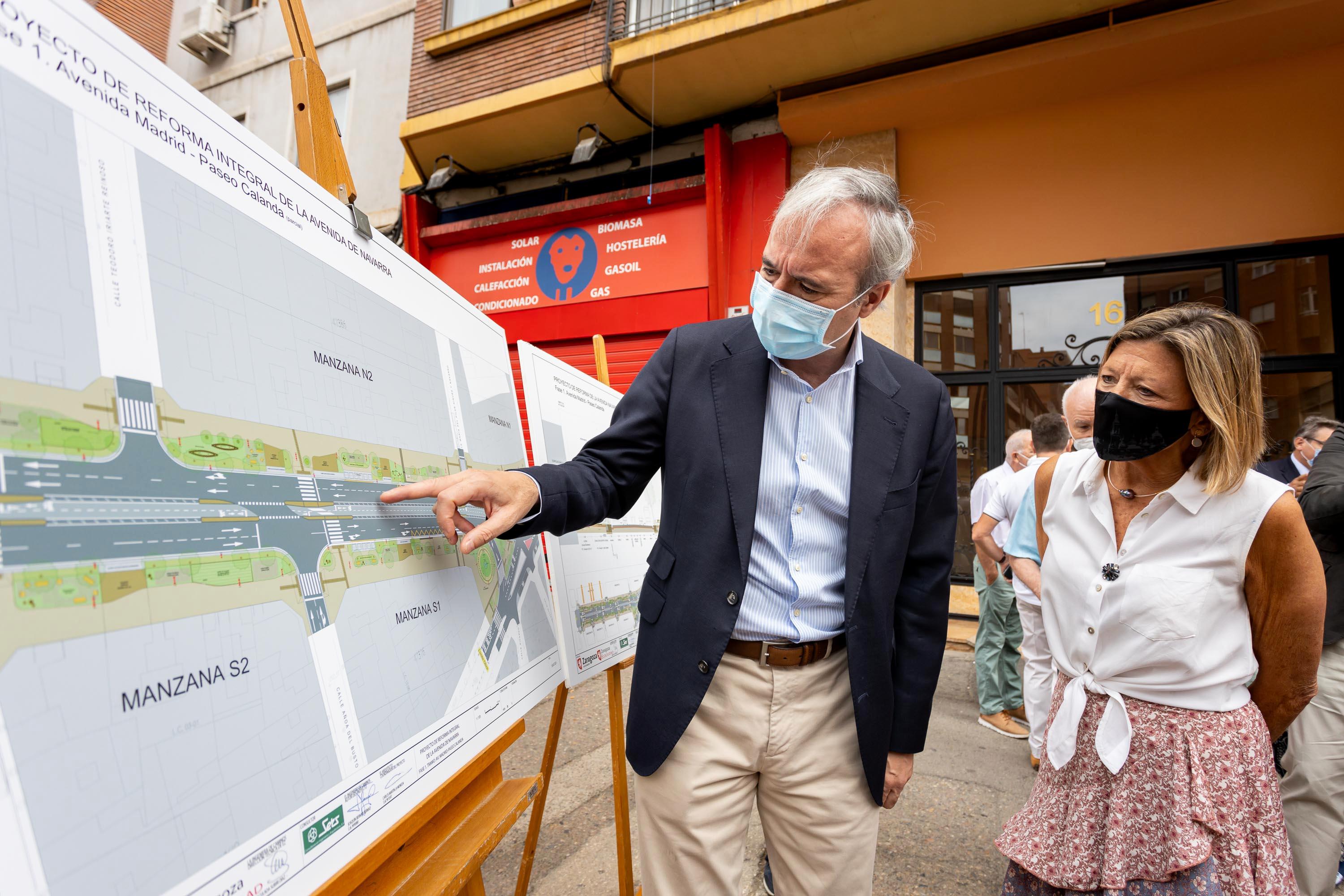 Azcón ha destacado que la nueva Avenida Navarra será `más amable y saludable para los peatones y contribuirá a poner en valor el comercio'. Para ello pasará a convertirse en un gran paseo con aceras totalmente accesibles y libres de obstáculos que oscilarán entre los 4 y 6 metros de ancho; lo que además garantiza el acceso y maniobra de los Bomberos. A lo largo de cada acera habrá una banda verde sobre las que se distribuirán el arbolado, zonas de descanso con bancos, fuentes, espacios lúdicos y de encuentro vecinal, zonas ajardinadas...