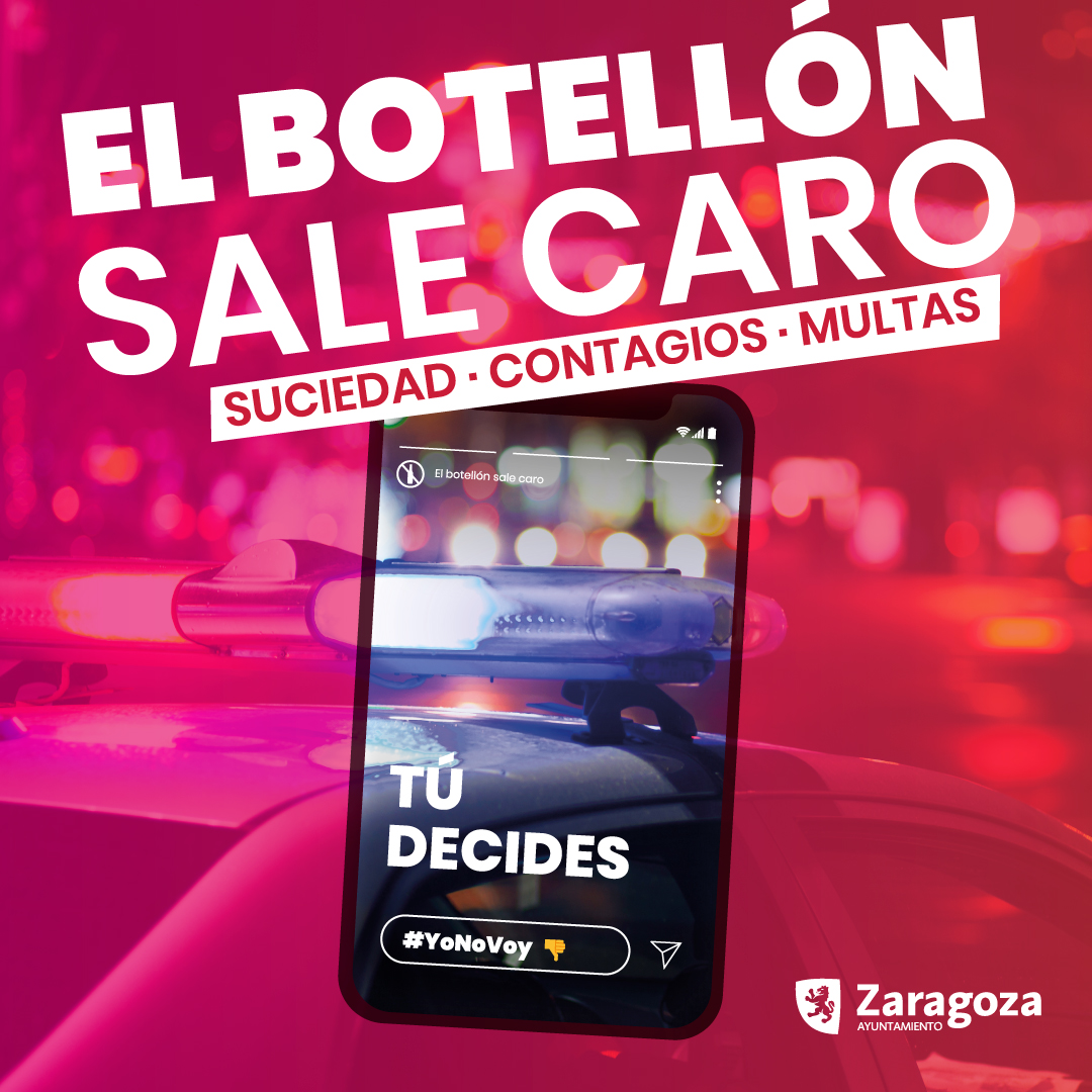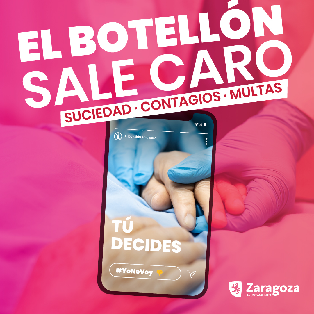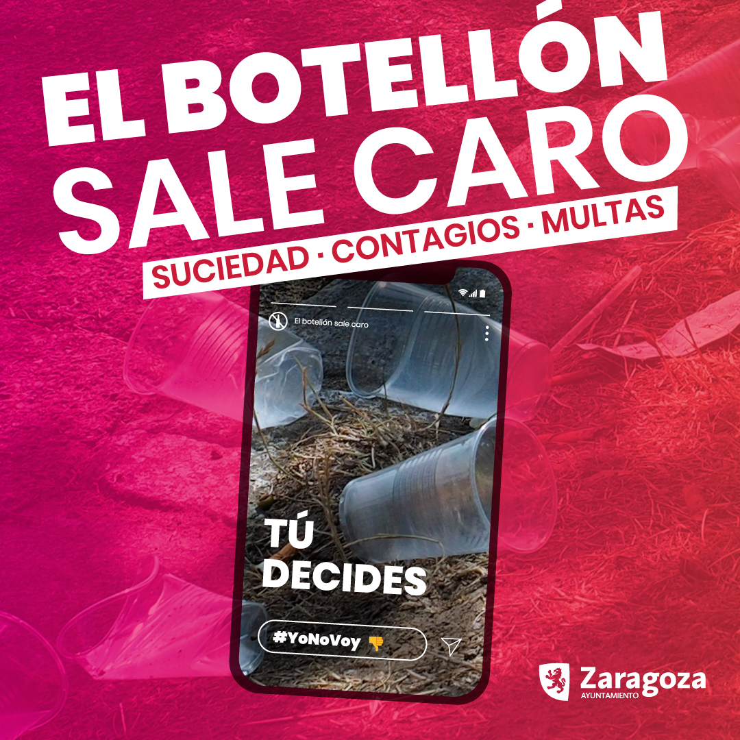 El botellón está prohibido y practicarlo tiene consecuencias que se agravan en el contexto de la pandemia. Este el mensaje central de la campaña que ha puesto en marcha el Ayuntamiento de Zaragoza para concienciar a los jóvenes y frenar esta práctica.