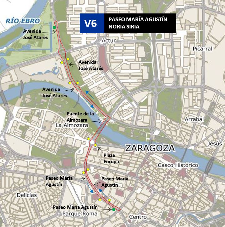 * Conciertos en Noria Siria Expo. Lanzadera V6 Paseo María Agustín-Noria Siria: se dispondrá de esta lanzadera los días 9-10-11-12 octubre, de 18,00 a 1,40 horas, con frecuencia de 5 minutos.
