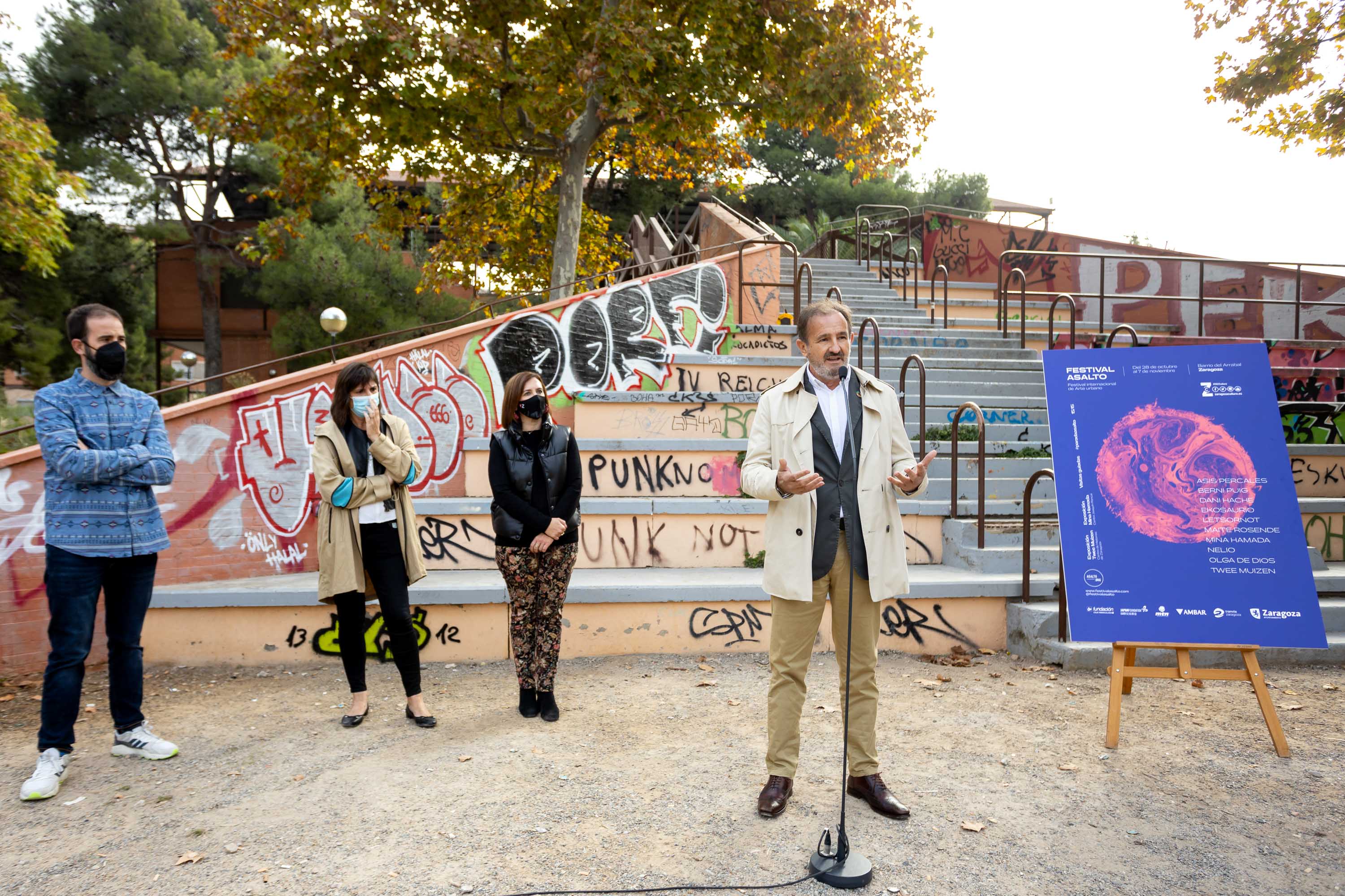 Desde hoy y hasta el próximo 7 de noviembre el barrio del Arrabal acoge la XVI del Festival Asalto, manteniendo su carácter internacional y contando con la participación de diez artistas, que intervendrán en diferentes calles del barrio. A ellos se suman se suman los 15 artistas que forman parte del proyecto Asalto 15/15 y que ha puesto en contacto a 15 vecinos y vecinas del barrio con 15 artistas de toda España para crear obras únicas inspiradas en sus historias.