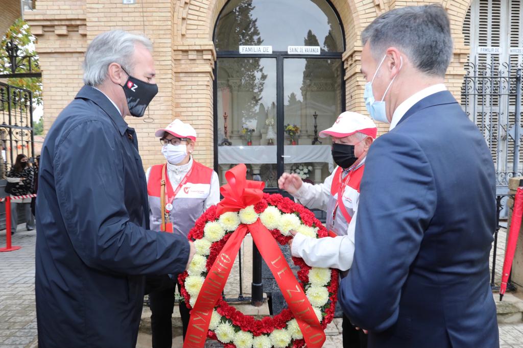 La visita de la corporación municipal ha comenzado en la Capilla Sainz de Varanda en la que se rinde homenaje a los alcaldes fallecidos, después se han depositado coronas en la capilla de Ángel Sanz Briz, en el monumento Víctimas Covid, la plaza del Voluntariado, la Fosa Común, los Donantes de Órganos, el Cabildo Metropolitano, los memoriales de Joaquín Costa y Víctimas del Franquismo. El recorrido se ha cerrado frente a la Cruz de los Caídos.