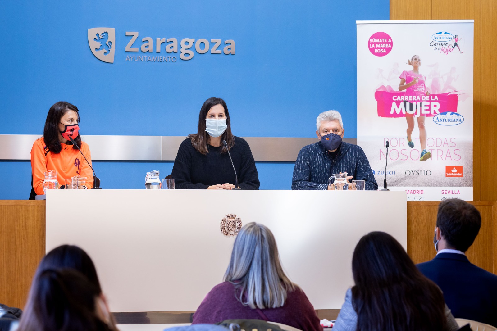 Fomentar el deporte femenino y luchar contra el cáncer de mama vuelven a ser los dos objetivos principales de la carrera, que hoy ha sido presentada en el Ayuntamiento de Zaragoza por Cristina García, concejala de Deportes, Henar Calleja, portavoz de la organización, Santiago Chivite, del Club Atletismo Olimpo, y la maratoniana María José Pueyo, varias veces ganadora de la Carrera de la Mujer de Zaragoza.