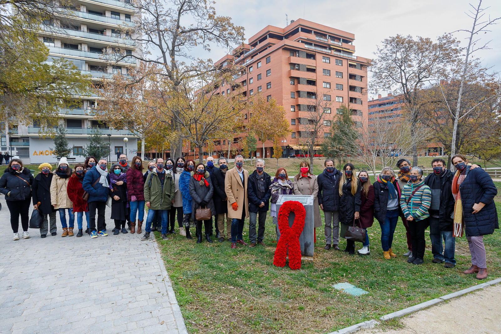 El Ayuntamiento de Zaragoza, el Gobierno de Aragón y las entidades que trabajan por la erradicación del VIH han conmemorado hoy el Día Internacional de la Lucha contra el Sida con un simbólico acto en el Parque Bruil, junto a la placa que hace dos años fue instalada por el Consistorio con este motivo.