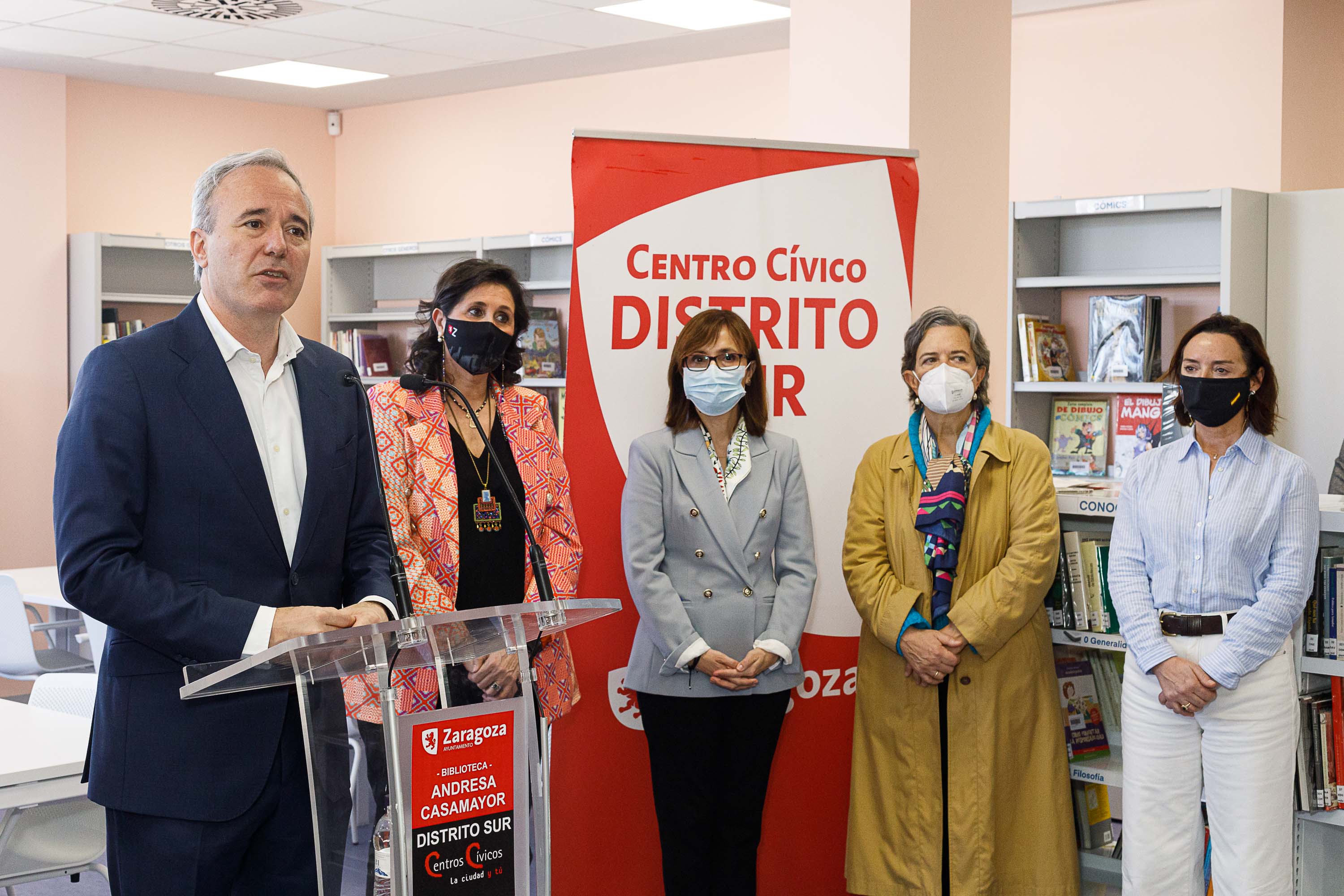 El alcalde de la ciudad, Jorge Azcón, ha presidido la apertura de una de las bibliotecas más esperadas y demandadas, en un acto que ha contado con la asistencia de la concejala de Educación y vicepresidenta del Patronato Municipal de Educación y Bibliotecas, Paloma Espinosa, la presidenta del Distrito Sur, María Antoñanzas, el consejero de Participación y Relación con los Ciudadanos, Javier Rodrigo, el consejero de Acción Social y Familia, Ángel Lorén, y representantes de los grupos municipales y de las entidades vecinales.
