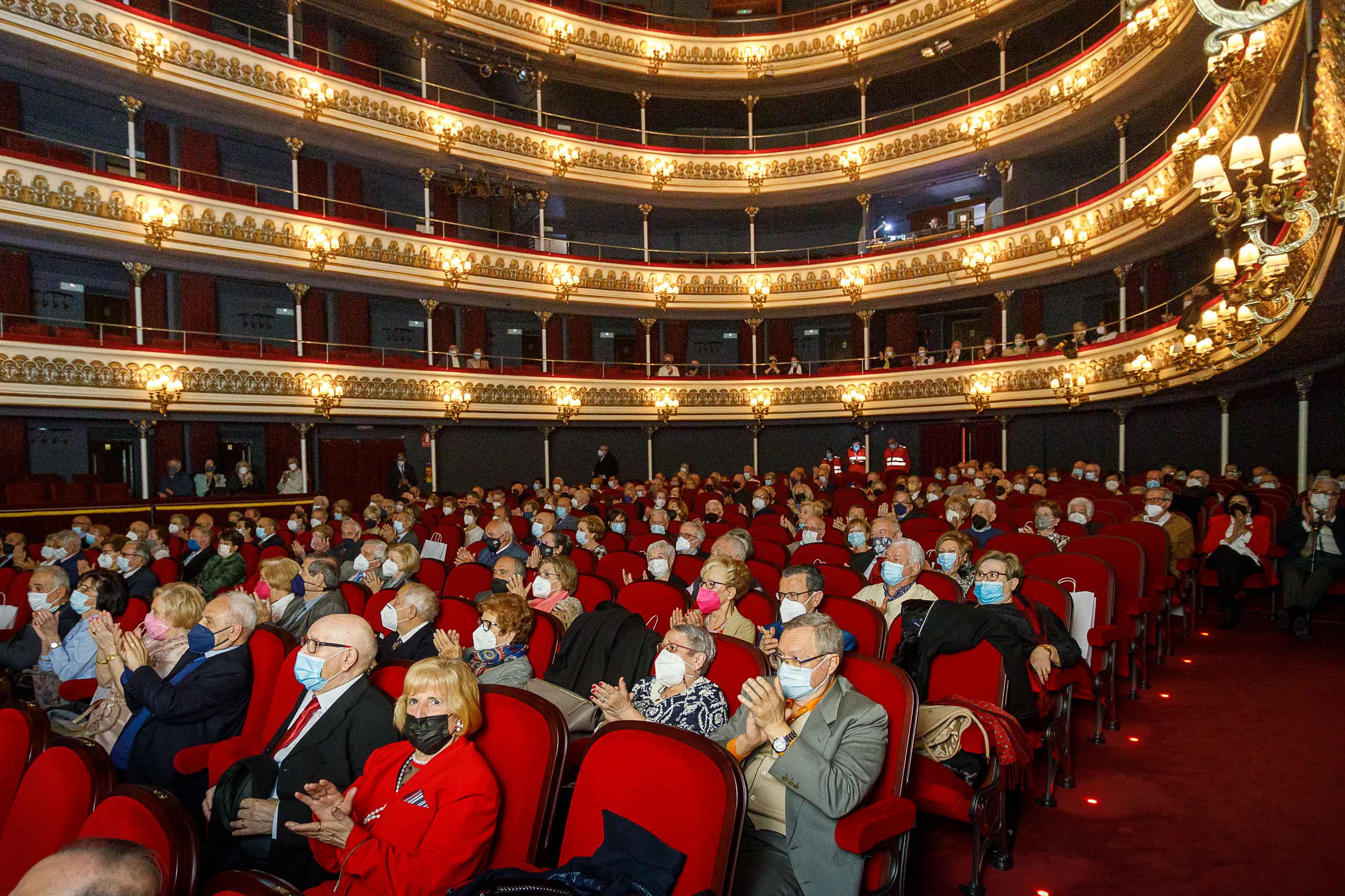 El Teatro Principal ha acogido hoy la gala de homenaje a las parejas que en 2020 cumplieron 50 años de convivencia, y que el año pasado, debido a la pandemia, no pudieron disfrutar de este tradicional y emotivo evento organizado por la Concejalía de Mayores del Ayuntamiento de Zaragoza. Han participado 99 parejas, que han sido recibidas por la vicealcaldesa Sara Fernández y la concejala delegada de Mayores, Paloma Espinosa, y por representantes de los grupos municipales.