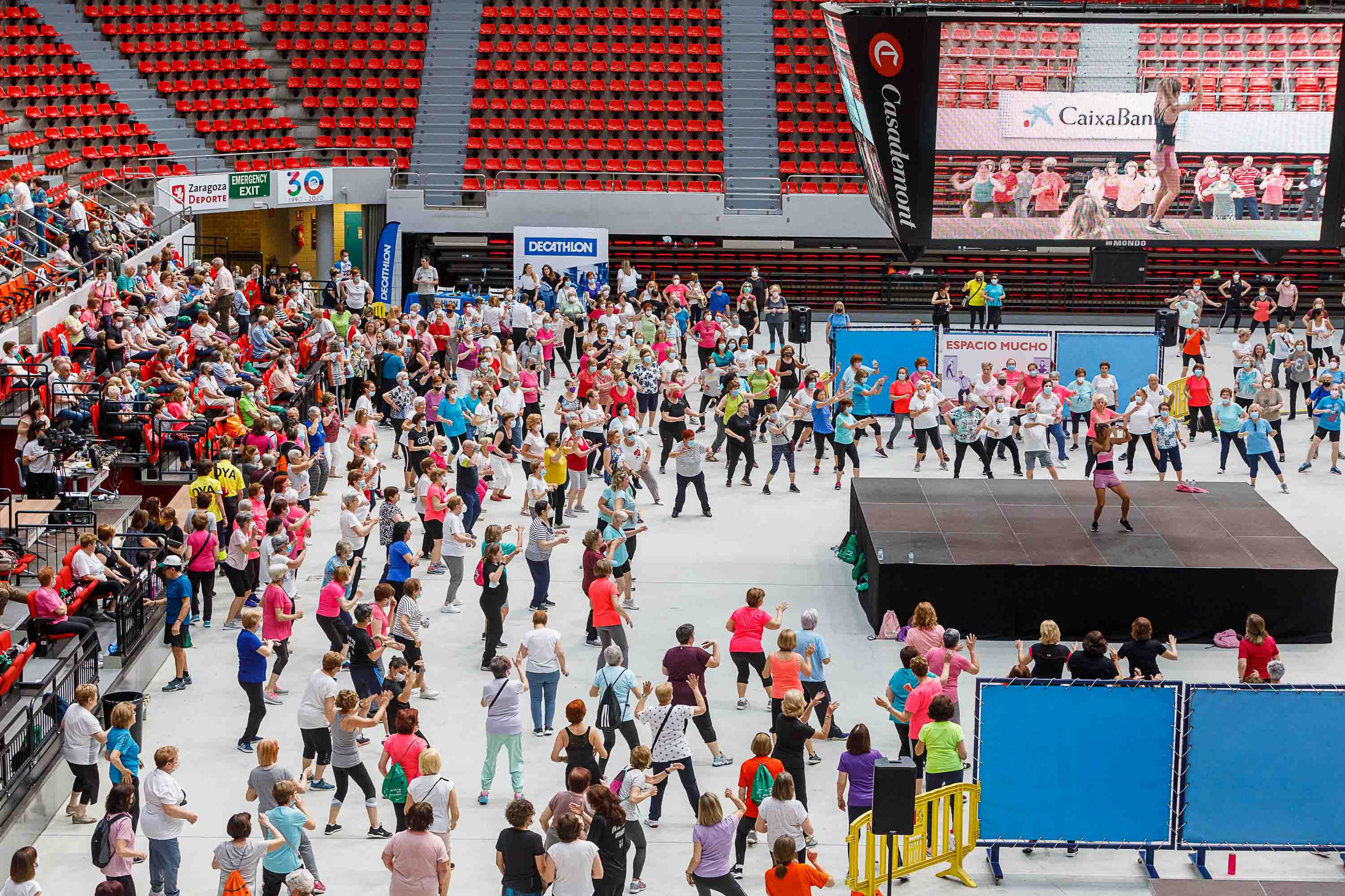 Unas 3.700 personas han participado esta temporada 2021/2022 en el programa de gimnasia de mantenimiento para adultos y mayores de Zaragoza Deporte, que hoy ha celebrado su fiesta de fin de curso en el pabellón Príncipe Felipe.