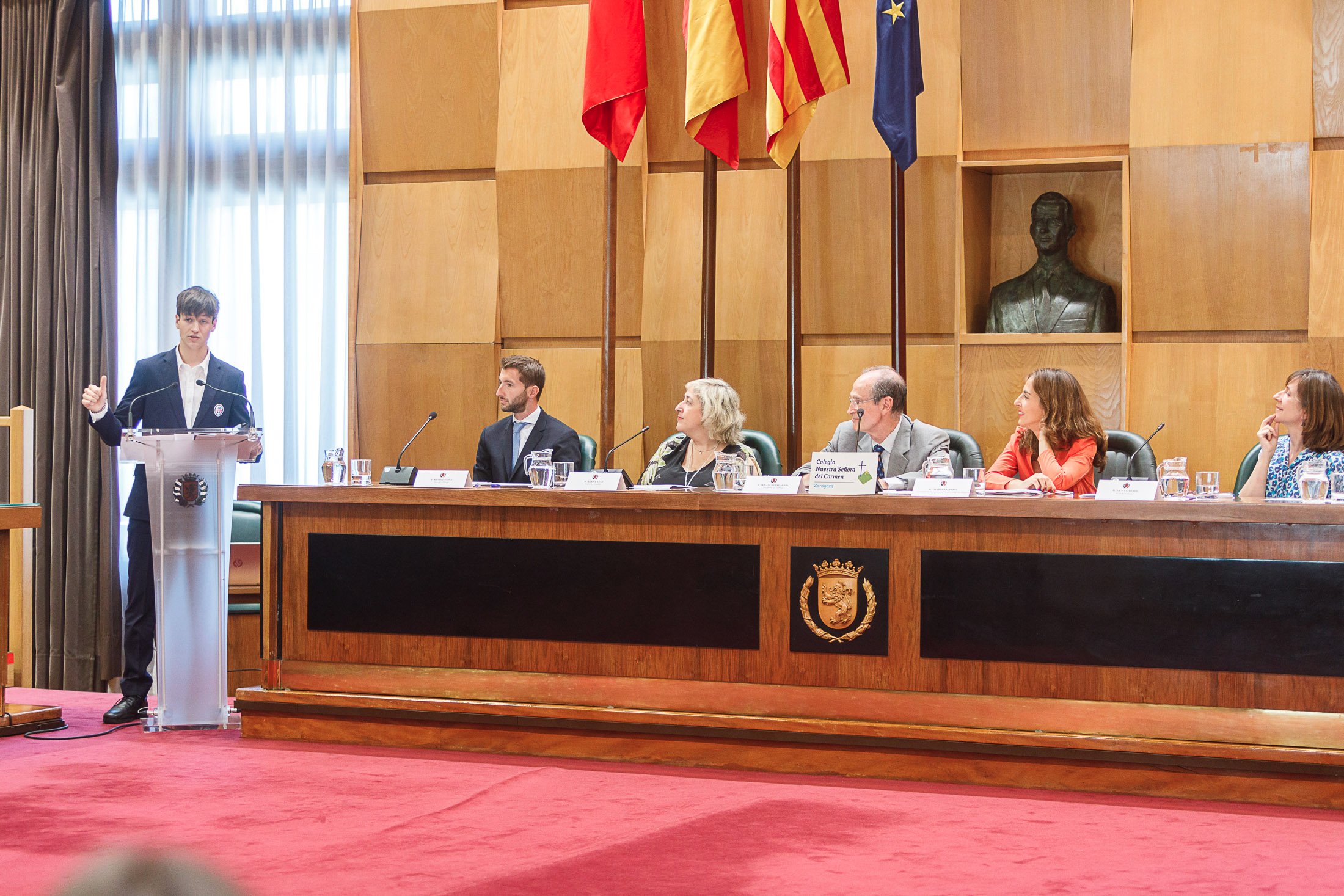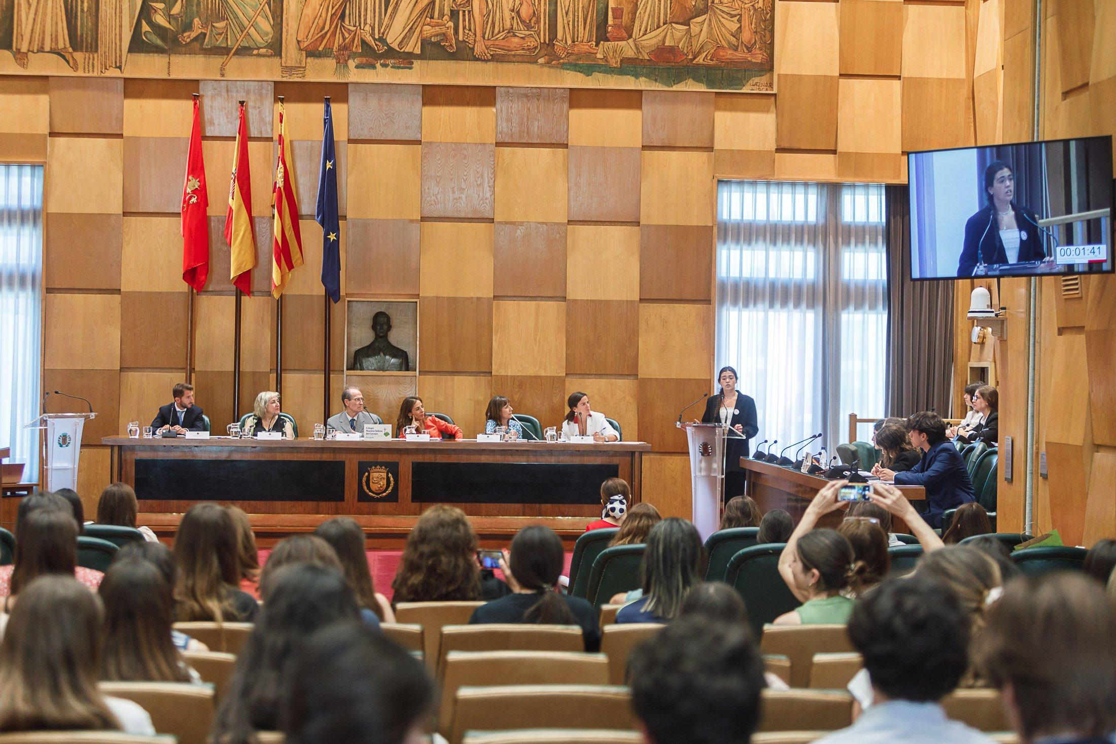 El Salón de Plenos del Ayuntamiento de Zaragoza ha acogido esta mañana el III Torneo de Debate de Bioética organizado por el Colegio Nuestra Señora del Carmen. El Consistorio se ha convertido en escenario de un encuentro que se desarrolla con el objetivo de fomentar la capacidad dialéctica 40 alumnos de Bachiller, sus habilidades de oratoria y su argumentación.