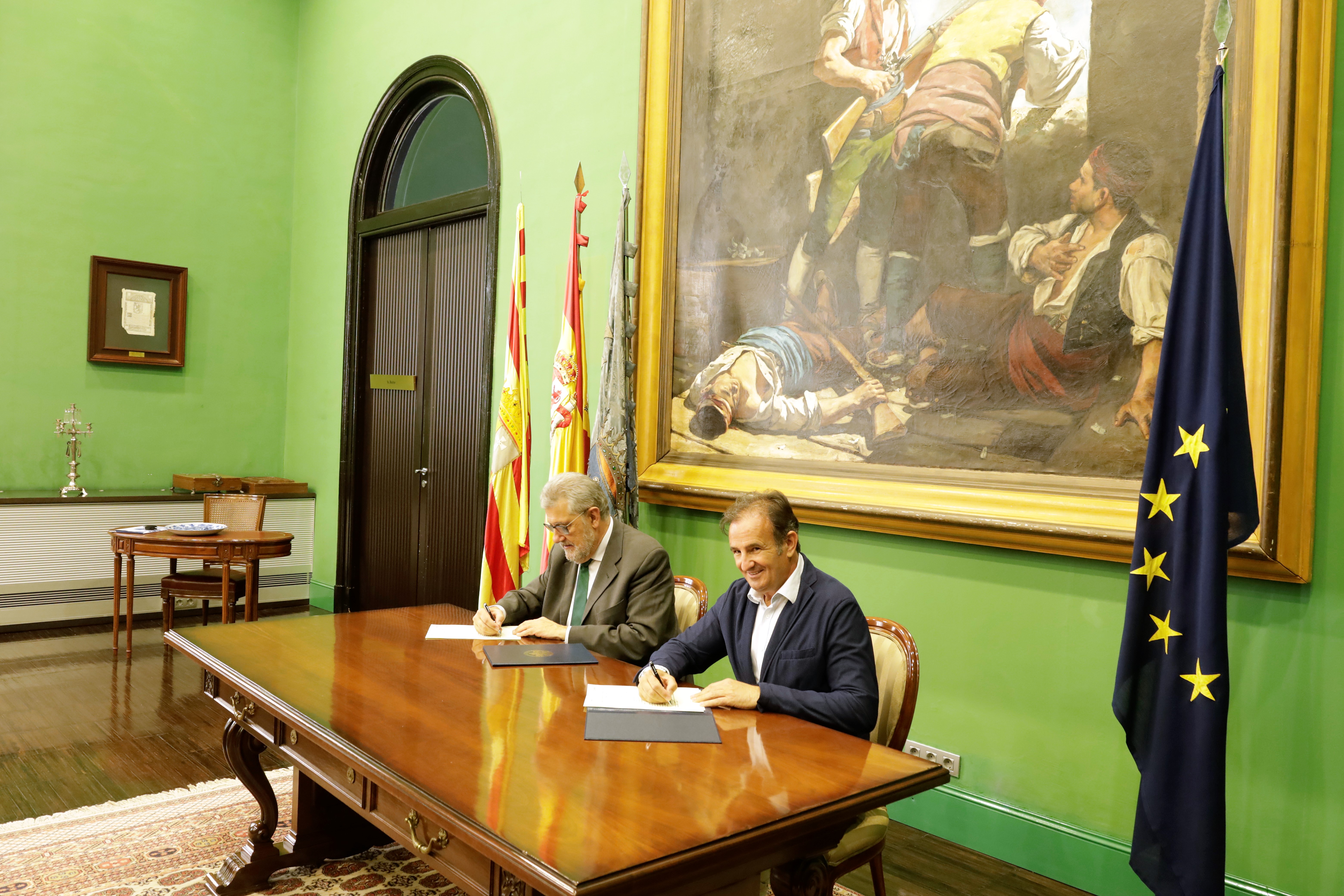 El rector de la Universidad de Zaragoza, José Antonio Mayoral, y el consejero del Área de Acción Social y Familia del Ayuntamiento de Zaragoza, Ángel Lorén, han firmado hoy un convenio de colaboración, con objeto de llevar a cabo acciones de sensibilización e información, formación e investigación, relacionadas con la igualdad de oportunidades entre hombres y mujeres y la no discriminación por razón de género, dirigidas al estudiantado de la Universidad de Zaragoza.