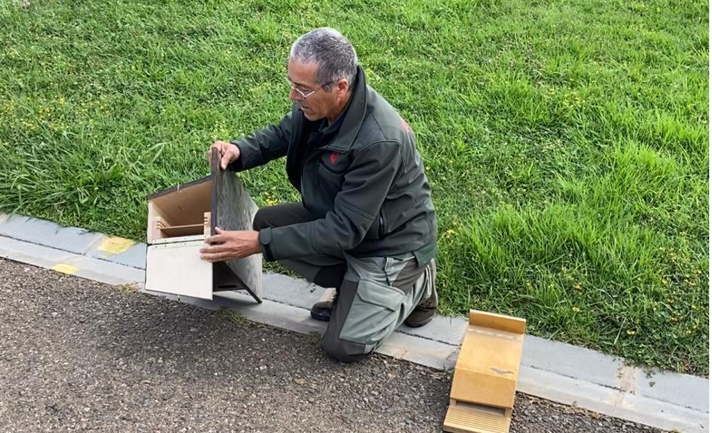 Las cajas nido han sido fabricadas por las Brigadas Municipales de Arquitectura y su colocación se ha realizado con la colaboración de los Bomberos y la Unidad de Conservación del Medio Natural.