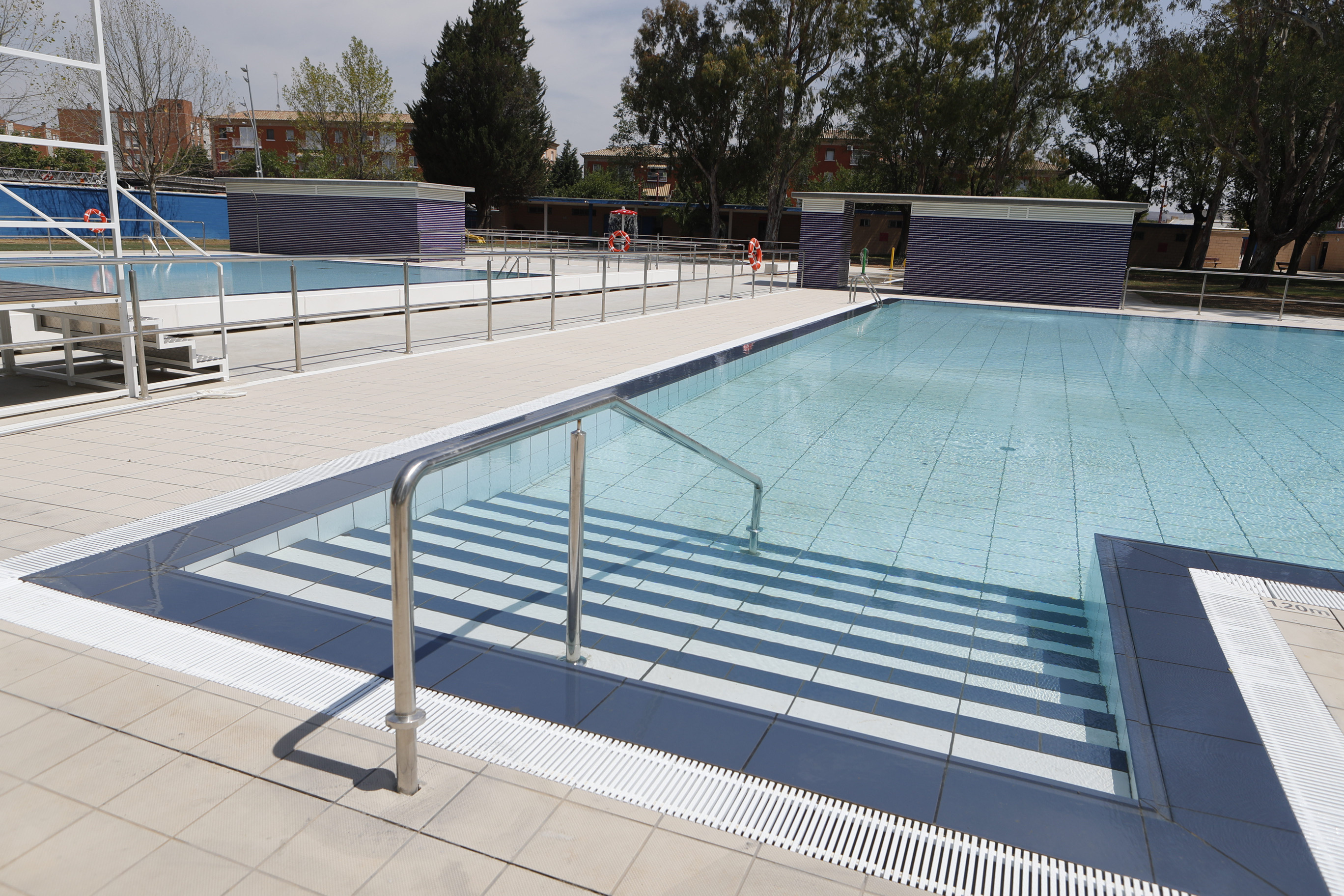 Las nuevas piscinas municipales del barrio rural de Casetas abrirán sus puertas este sábado 23 de julio, en una jornada de puertas abiertas con acceso gratuito. La concejala delegada de Deportes del Ayuntamiento de Zaragoza, Cristina García, y la concejala de Barrios Rurales, Paloma Espinosa, han visitado hoy las instalaciones del CDM Aguas Claras, que ya están listas tras una ambiciosa reforma integral valorada en 793.441 euros (IVA incluido), ejecutada durante los últimos nueve meses con cargo al convenio del Ayuntamiento de Zaragoza y la DPZ. Ha asistido también el alcalde de Casetas, Jorge Eseverri.