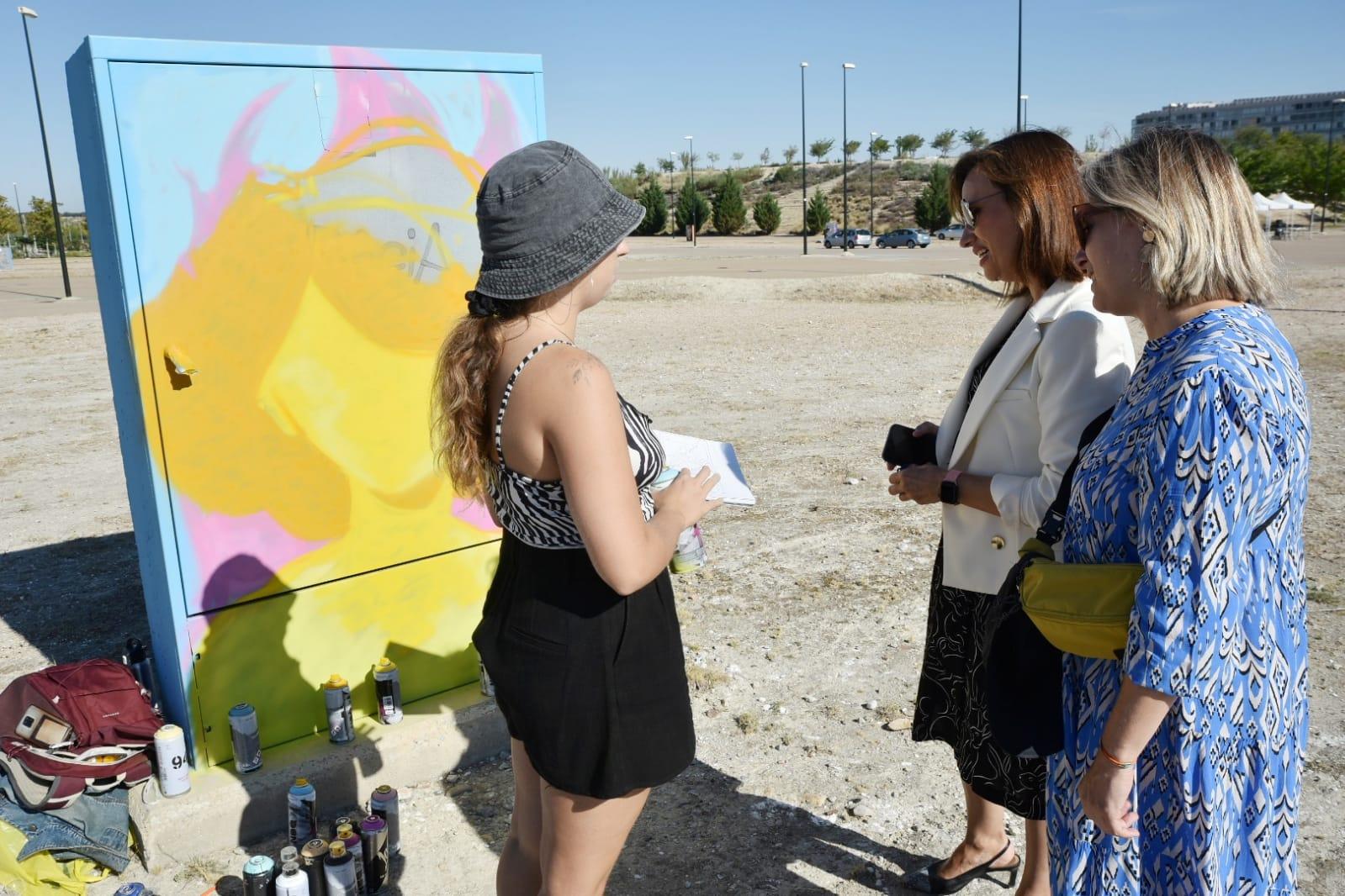 La convocatoria, lanzada este verano y dirigida a chicos y chicas de 14 a 30 años, fue todo un éxito. En pocos días, se llenaron las cincuenta plazas ofertadas para participar en esta actividad coordinada por el Servicio de Juventud, en colaboración con los muralistas y grafiteros profesionales Eduardo Tobajas (@vida.mural), Julia González (@nadamasjulia) y Pablo García (@zumo.d.mandragora). En total, se pintarán cerca de cien grafitis en los 69 armarios de electricidad y en las siete cajas que hay en la entrada, por las dos caras.
