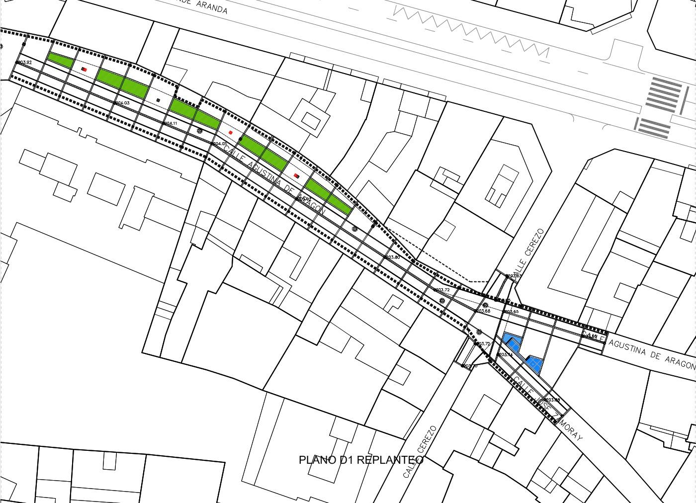La propuesta de actuación definida busca adecuar el espacio público para conseguir mejorar la calidad de vida de los vecinos, compatibilizar el tráfico rodado con el peatonal identificando y jerarquizando las circulaciones mediante la proyección de diferentes pavimentos, ampliar el verde de forma introduciendo encespado y floración en la calle, ejecutando parterres lineales que acompañan y agrupan el arbolado, de dos en dos, en la medida que la dimensión de la calle lo permite, y adecuar el cruce de las calles de Agustina de Aragón con calle Zamoray y calle Cerezo, con el diseño de una fuente y el mobiliario urbano que delimite los usos previstos a estas vías.