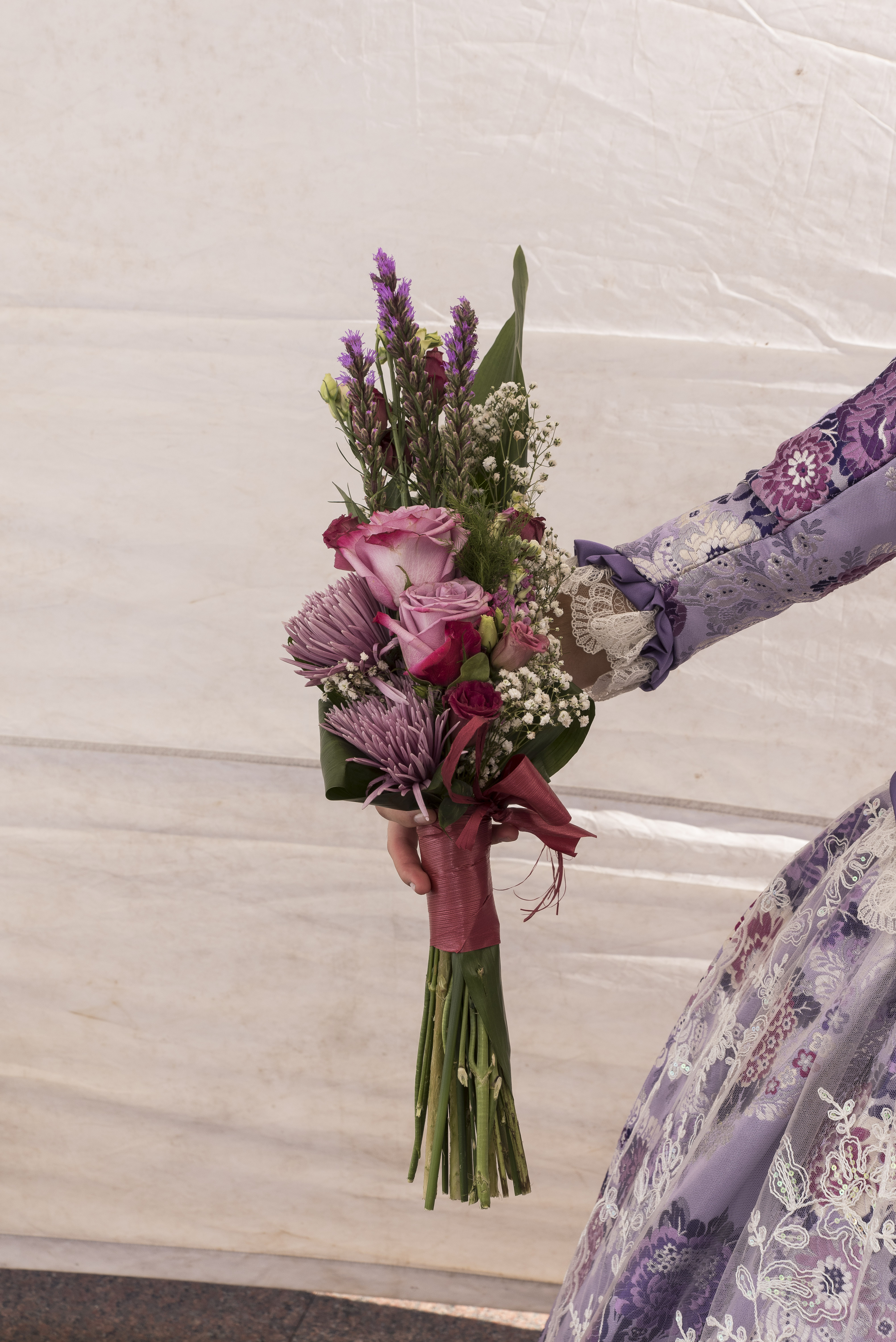PREMIO DE ARREGLO FLORAL: Alicia Navarro Serra (Valencia), por la originalidad, perfectas proporciones, vestimenta correcta, orfebrería adecuada, correcta disposición del ramo, cromática adecuada y por todo ello perfecto en su conjunto.