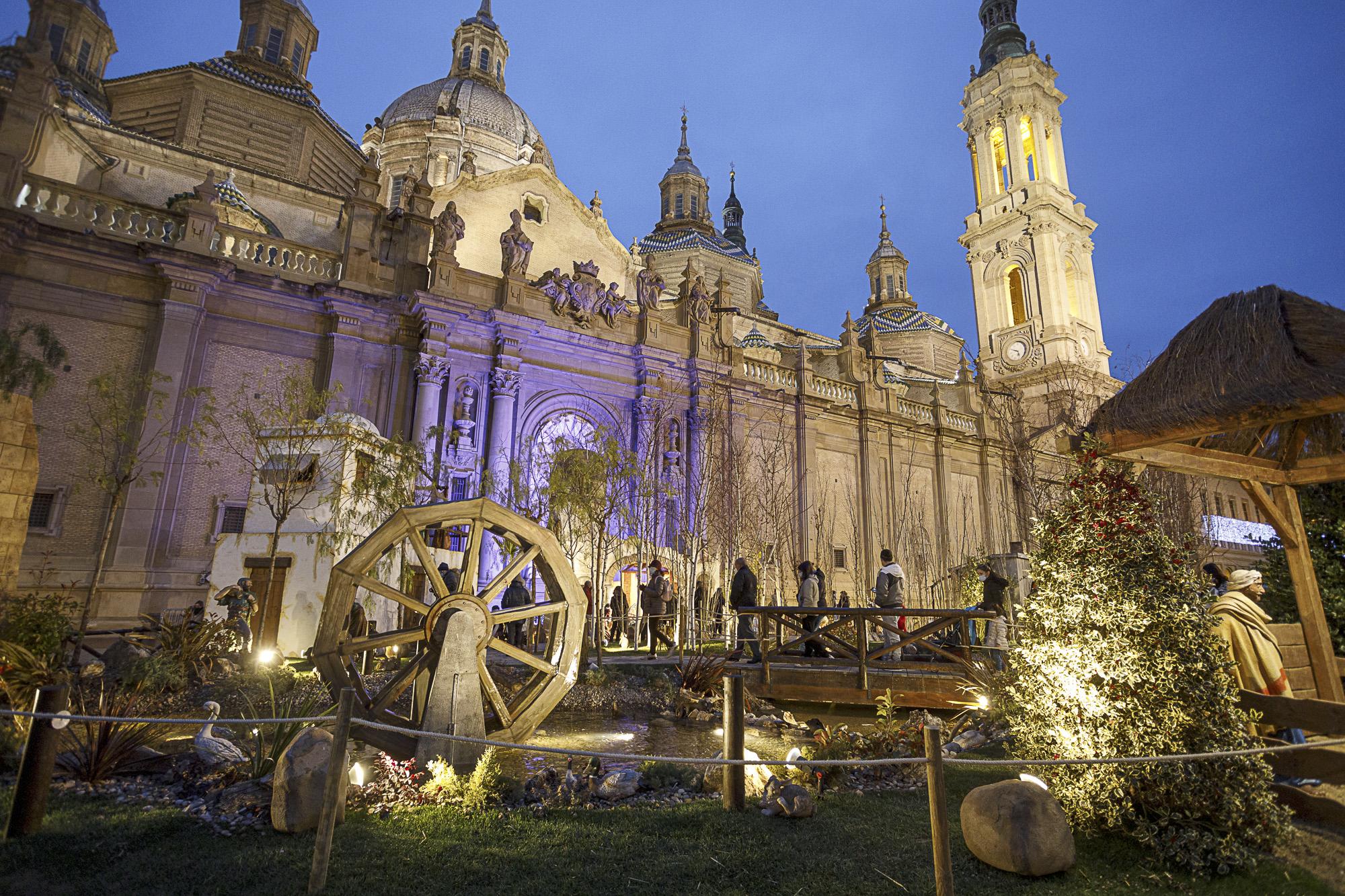 El Servicio de Parque y Jardines mantendrá la estructura de planta del año pasado con la instalación en forma de abanico o manto, un formato de vector sectorial, colocando en el epicentro de todo el Belén la escena del Nacimiento, alineada a su vez visualmente con el conjunto escultural diseñado por Pablo Serrano situado en la fachada principal de la Basílica del Pilar lo que, junto a los juegos de iluminación, el sonido ambiente en diferentes zonas y el movimiento de agua, dan mayor espectacularidad a este tradicional Belén, que todos los años recibe un gran número de visitantes.