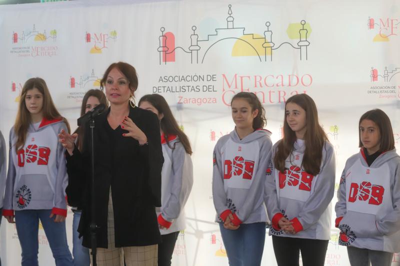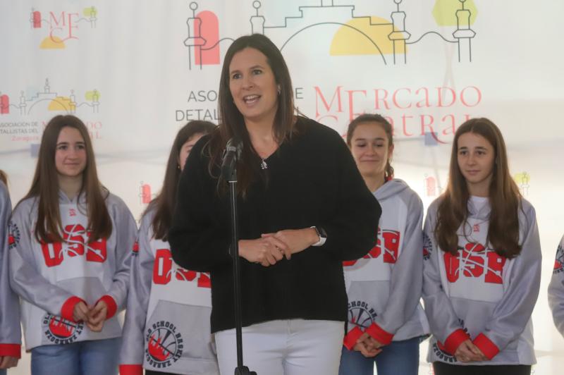 La presentación de esta acción generosa ha estado presidida por la consejera de Economía, Innovación y Empleo del Ayuntamiento de Zaragoza, Carmen Herrarte; la concejala de Deportes, Cristina García; el presidente del club Old School Basket, Daniel Bosch; el hermano mayor de la Hermandad del Santo Refugio, Santiago Sánchez, y el gerente del Mercado Central, Fernando Benito.