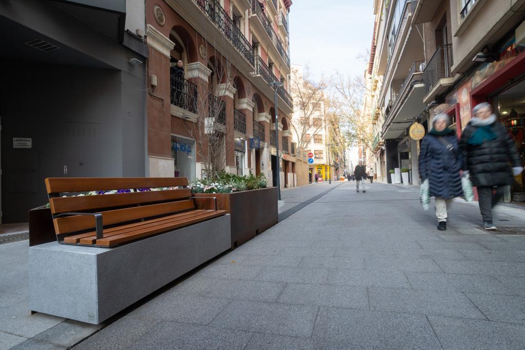 Además cuentan con bancos integrados. Realizados en chapa de acero corten, hormigón y madera, esta solución ha permitido crear puntos de descanso a lo largo de todo el eje comercial que hasta ahora no existían.