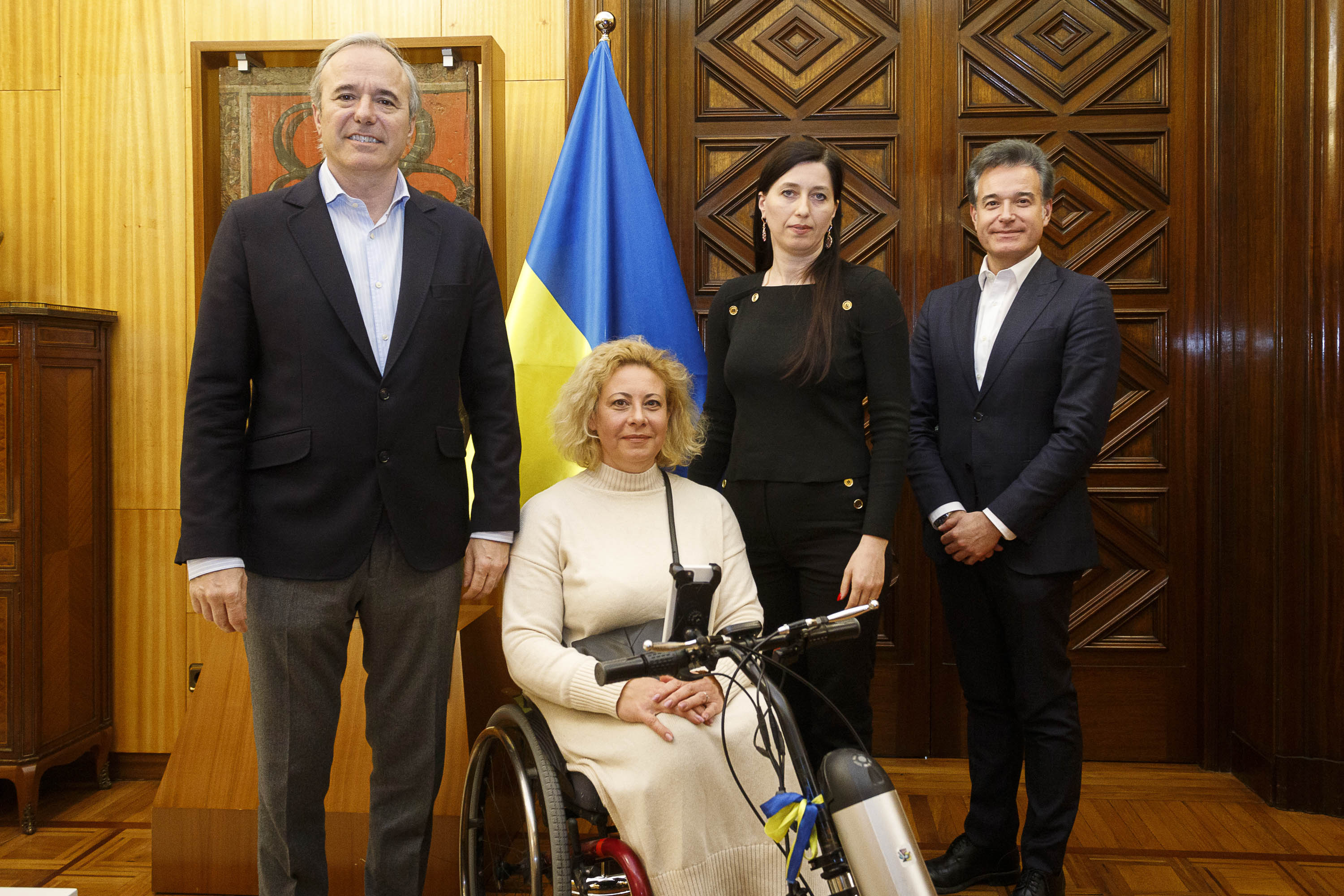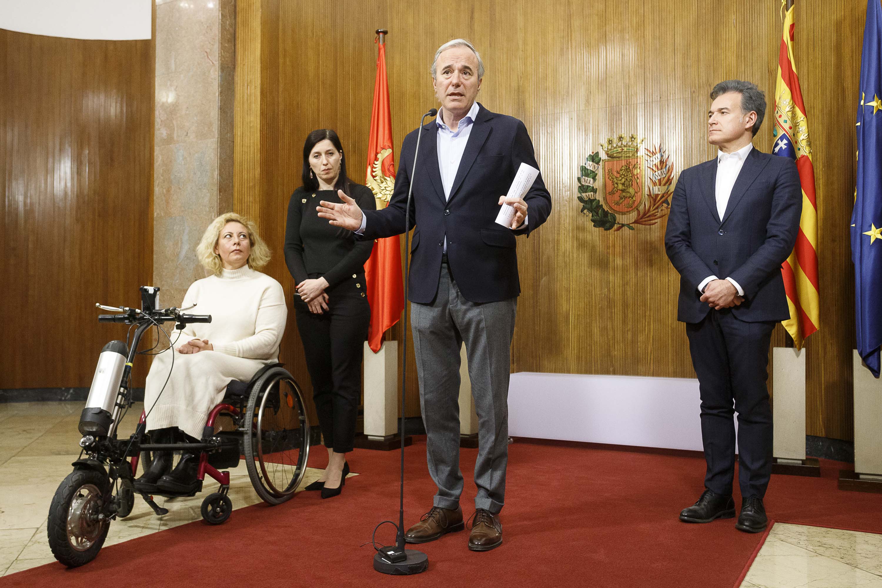 El alcalde de Zaragoza, Jorge Azcón, y el consejero de Urbanismo y Equipamientos, Víctor Serrano, han recibido hoy a la presidenta de la Asociación de Ucranianos Residentes en Aragón, Alina Klochko, y a la exnadadora paralímpica Olena Akopyan, quien huyó de su país con la ayuda de la aragonesa Teresa Perales y reside en Zaragoza desde hace marzo de 2022.