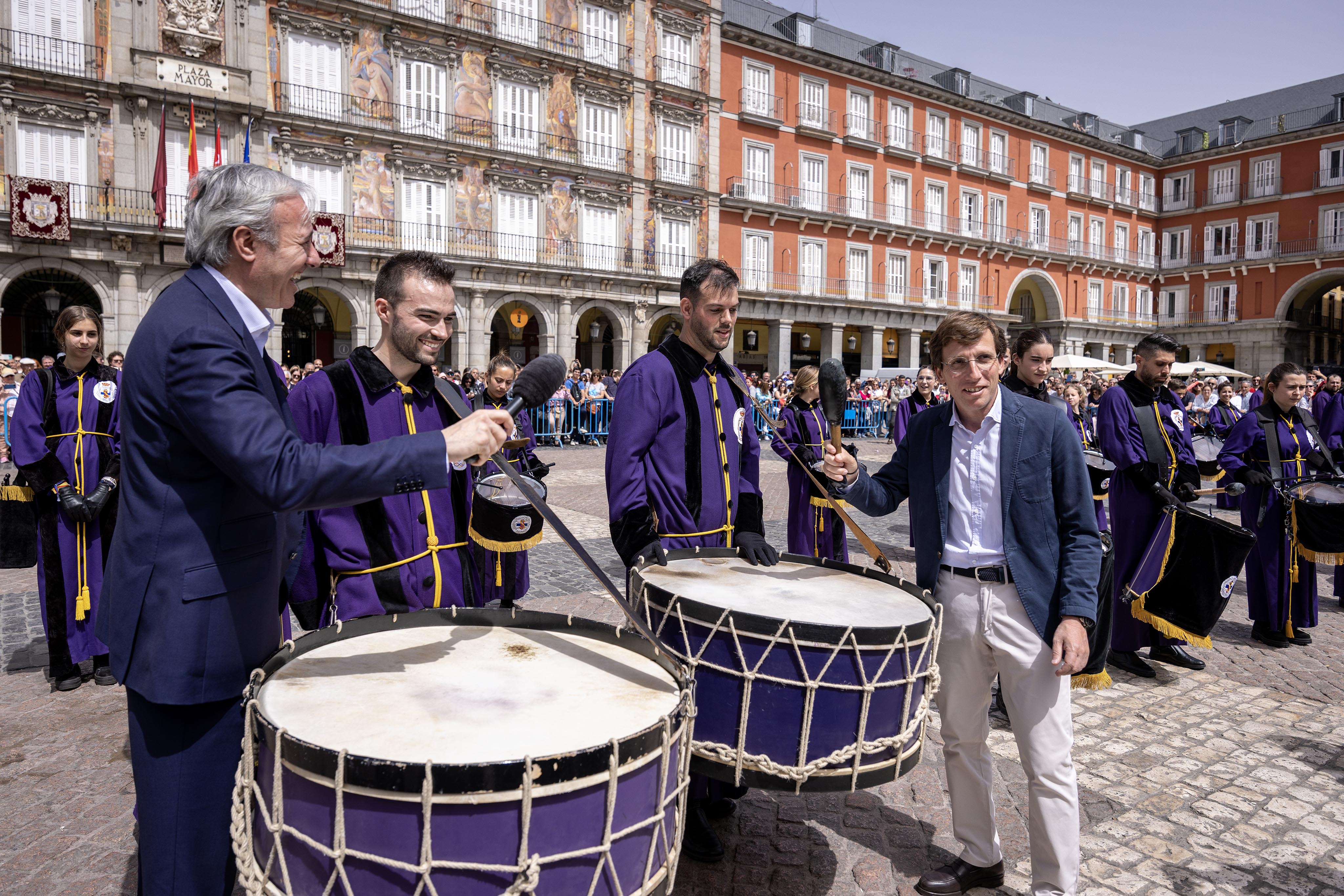 Los alcaldes de Madrid y Zaragoza participan en la tamborrada final de la Semana Santa madrileña