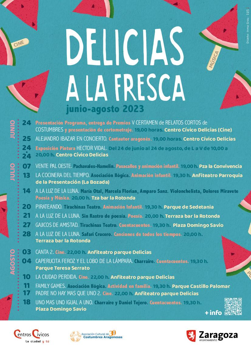 Este verano regresa una nueva edición de 'Delicias a la fresca' para disfrutar de las noches de verano. En total, serán quince espectáculos dirigidos a toda la población que tendrán lugar en diferentes espacios del barrio, la mayoría al aire libre.