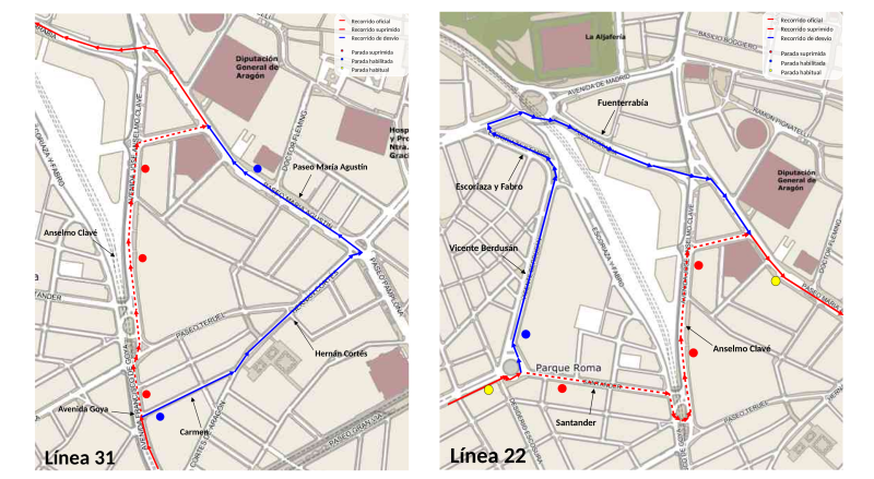 Más información sobre las paradas suprimidas y las habilitadas provisionalmente en Avanza Zaragoza-alteraciones del servicio