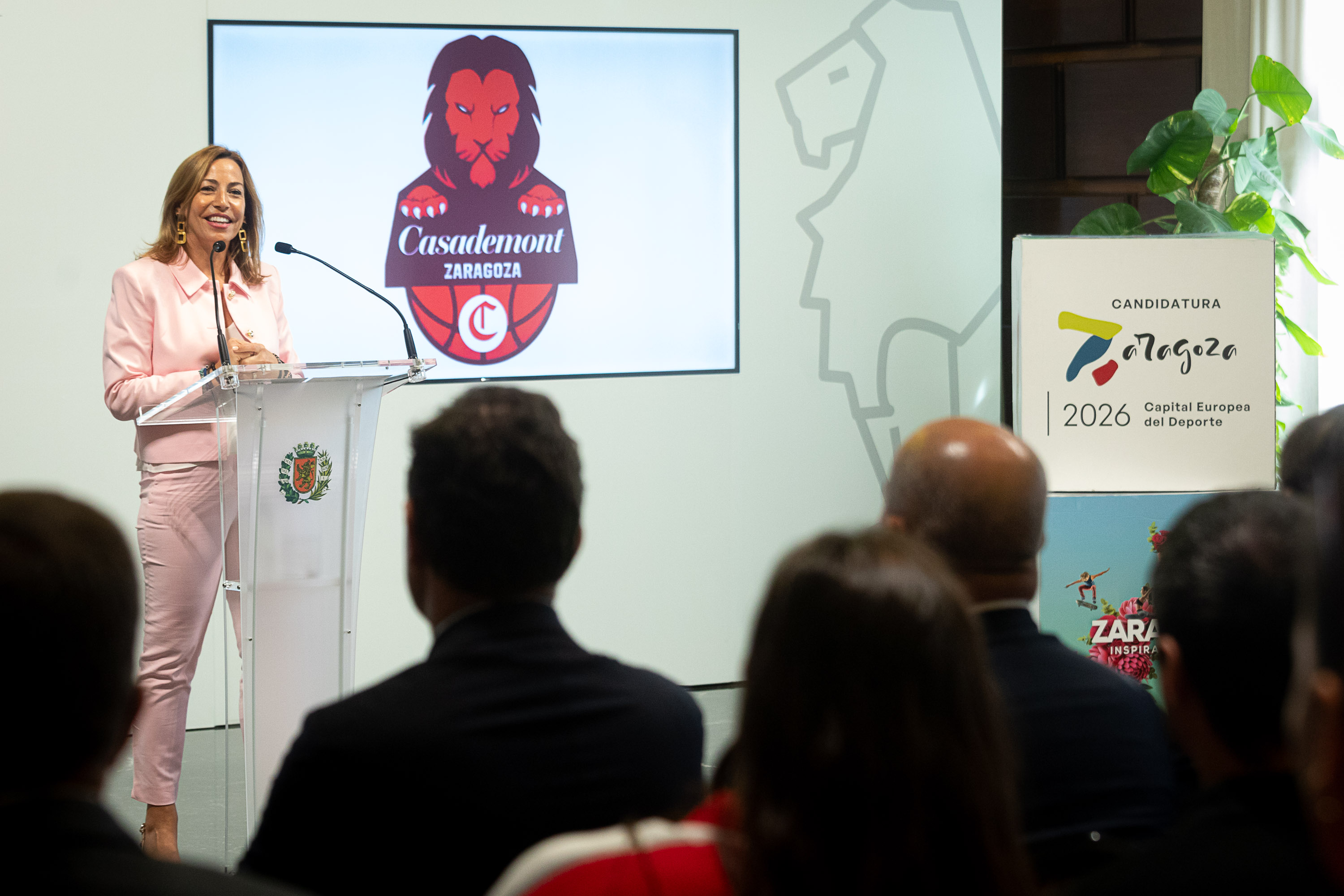 Natalia Chueca ha felicitado al club por los resultados de la última temporada, que han llevado tanto al equipo masculino como al femenino a competir en Europa. En especial, ha destacado el mérito de las jugadoras del Casademont femenino, próximas pregoneras de las Fiestas del Pilar, que van a participar por primera vez en la máxima categoría continental, la Euroliga, tras alzarse con la Copa de la Reina hace unos meses.