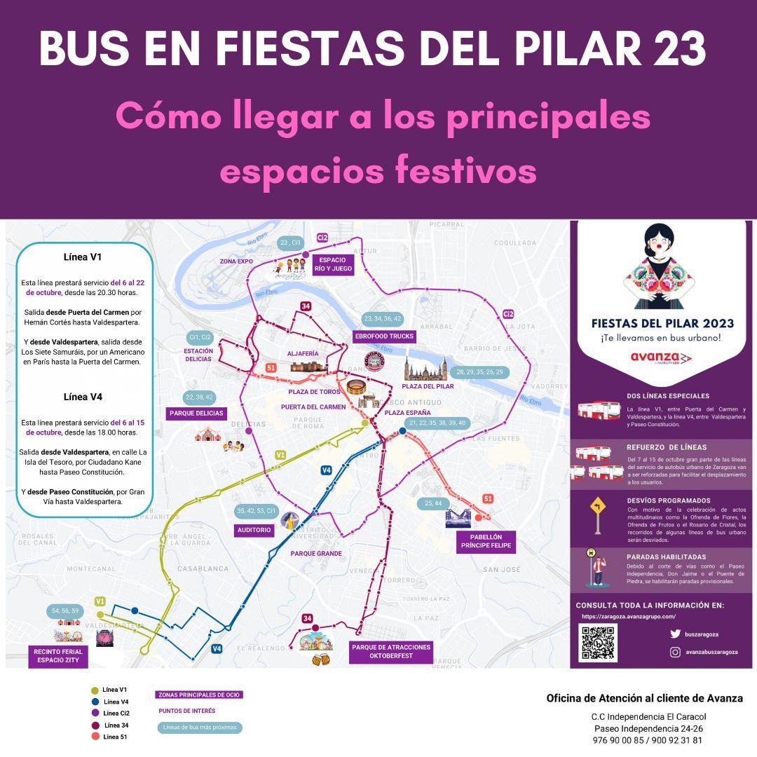 Todos los servicios de autobús que unen los barrios rurales con Zaragoza (a excepción de la línea de Villarrapa) se reforzarán durante la celebración de las fiestas. Los días 7, 10 y 12 los servicios diurnos circularán con frecuencias de día laborable, y los días 14y 15 con configuración de sábado laborable.