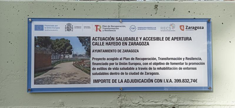 La Red Española de Ciudades Saludables de la FEMP seleccionó el proyecto de la calle Hayedo para ser financiado con fondos europeos dentro de la convocatoria de ayudas para rehabilitar o crear entornos saludables que contribuyan a una mejor calidad de vida de los ciudadanos. Esta convocatoria se enmarca en el Plan de Recuperación, Transformación y Resiliencia de la Unión Europea y las acciones para reforzar la prevención y promoción de la salud. Zaragoza ha obtenido una ayuda de 390.000 euros, lo que va a permitir al Ayuntamiento liberar esa cantidad del presupuesto municipal para poder destinarla a otras actuaciones.